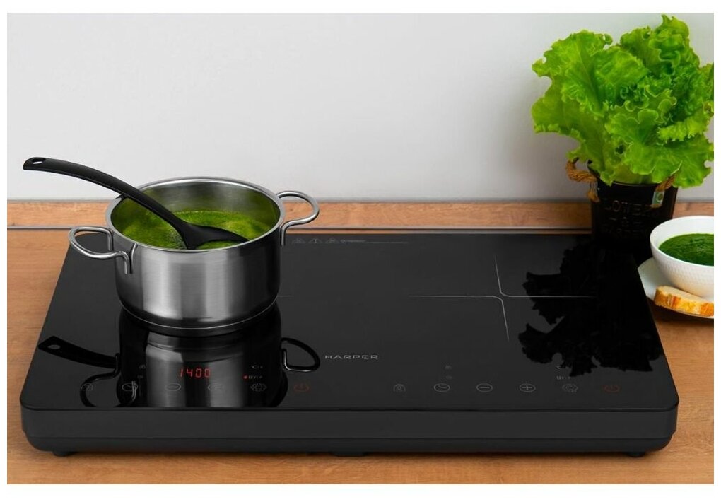Индукционная плита настольная HARPER HIC-201 / стеклокерамика / 2 конфорки, сенсорное управление, таймер приготовления, черная