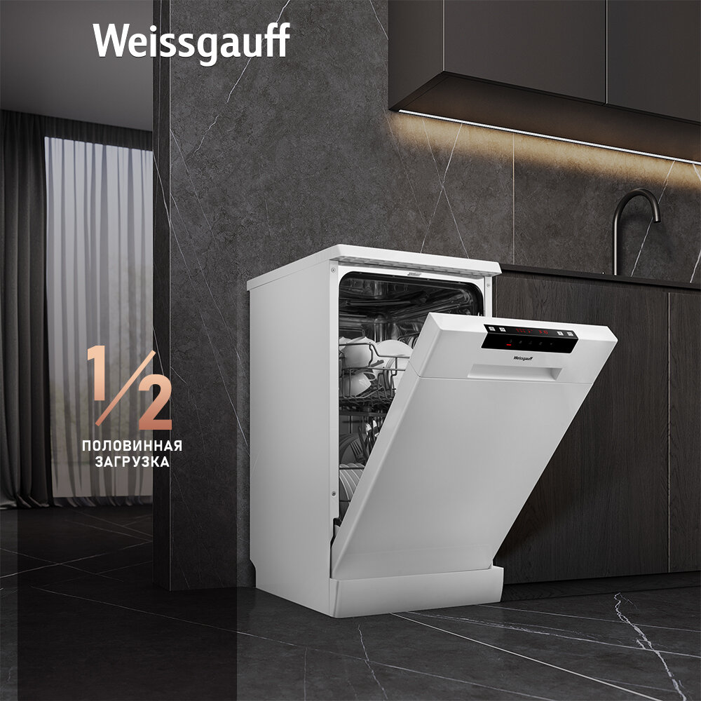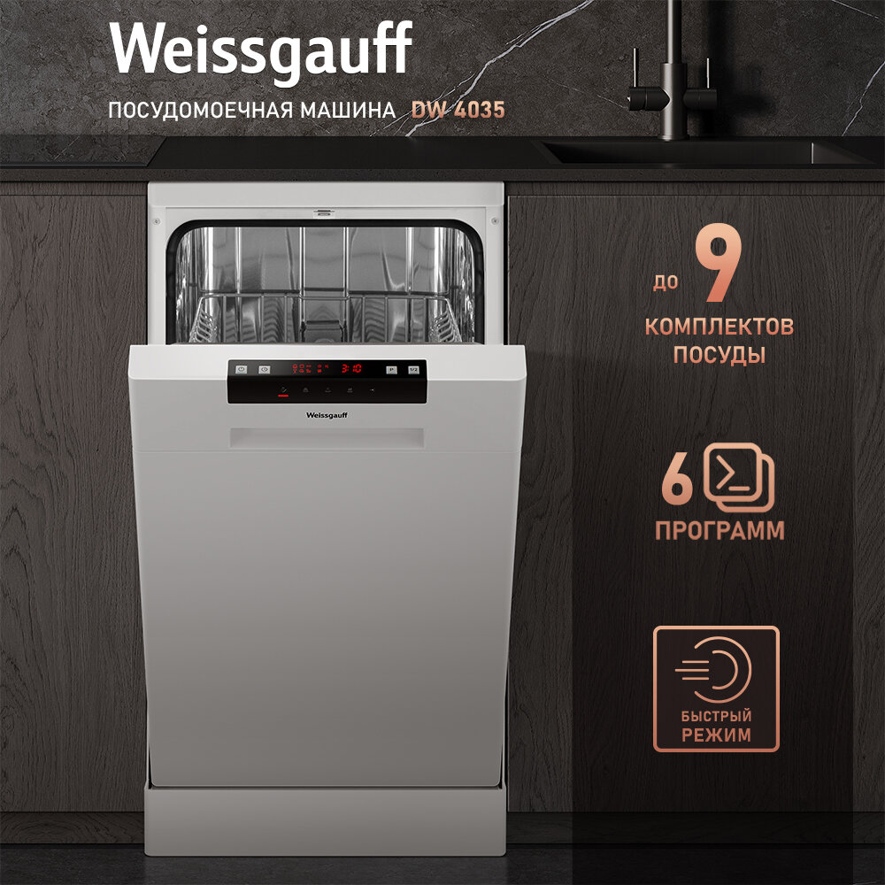 Посудомоечная машина WEISSGAUFF DW 4035, узкая, напольная, 44.8см, загрузка 10 комплектов, белая [426331]