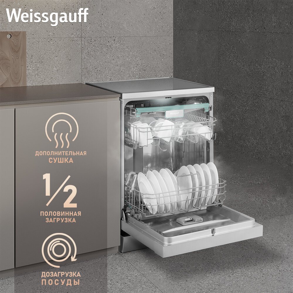 Посудомоечная машина Weissgauff 6138 Inverter Touch Inox, серебристый металлик