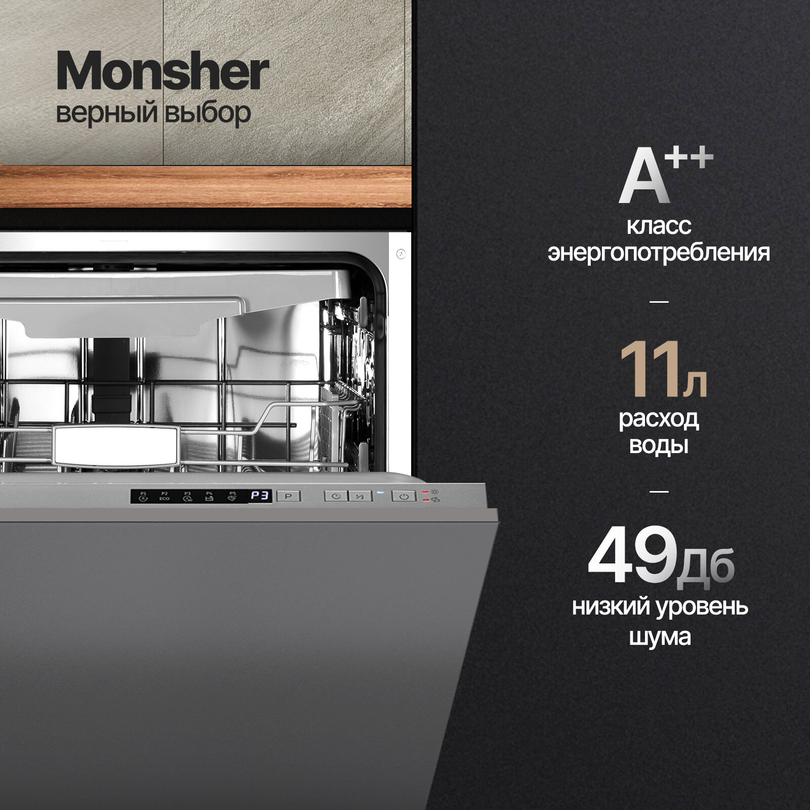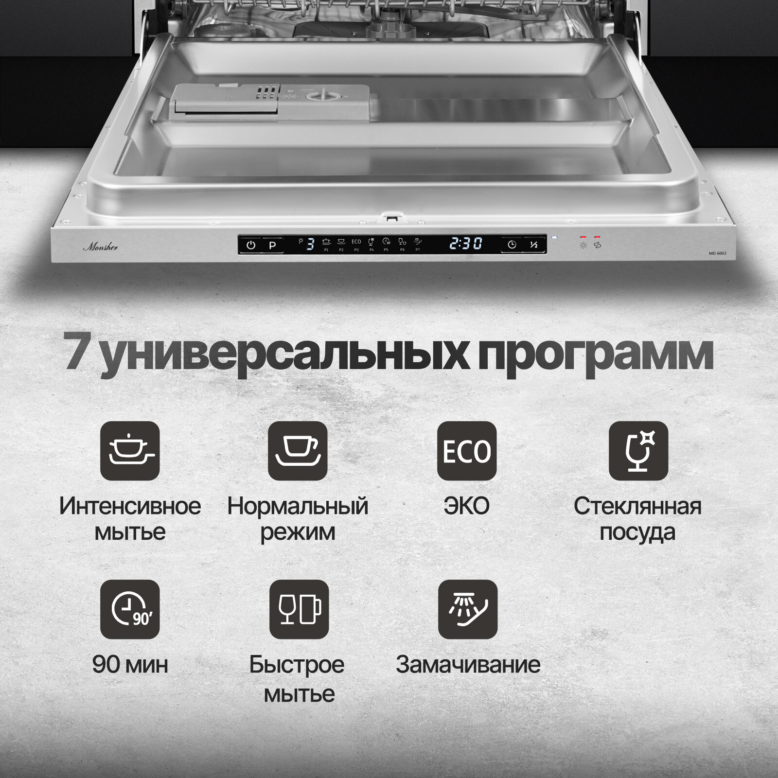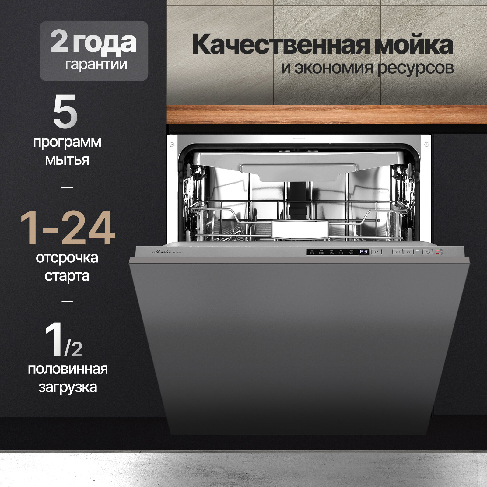 Посудомоечная машина встраиваемая Monsher MD 6003 (Модификация 2025 года)