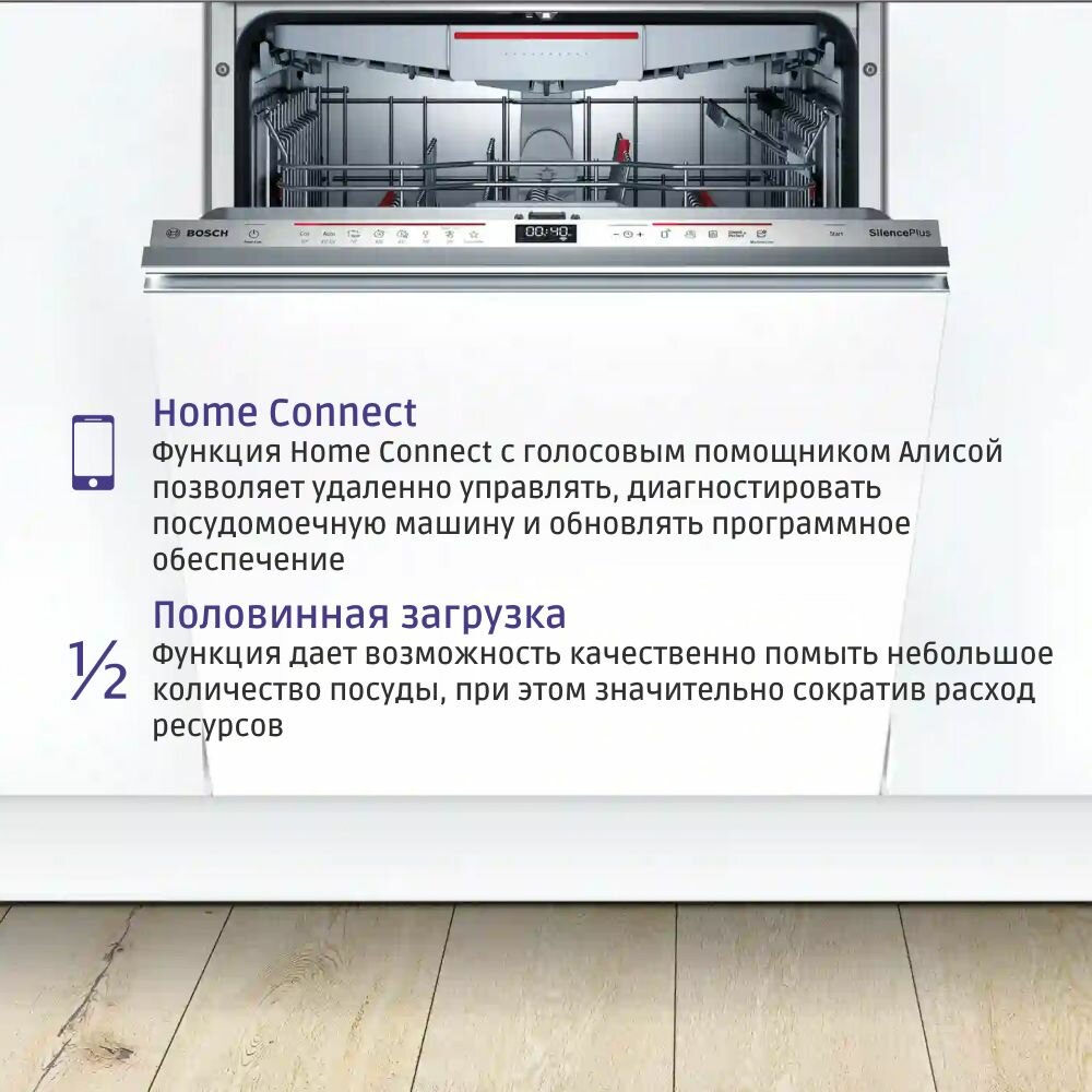 Встраиваемая посудомоечная машина с лучом на полу Bosch SMV6EMX75Q, мойка машины, ускоренная мойка, 3 корзины, 60 см