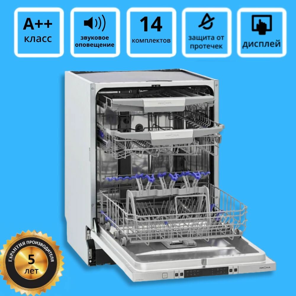 Встраиваемая посудомоечная машина KRONA MARTINA 60 BI, полноразмерная, 14 комплектов, серебристый