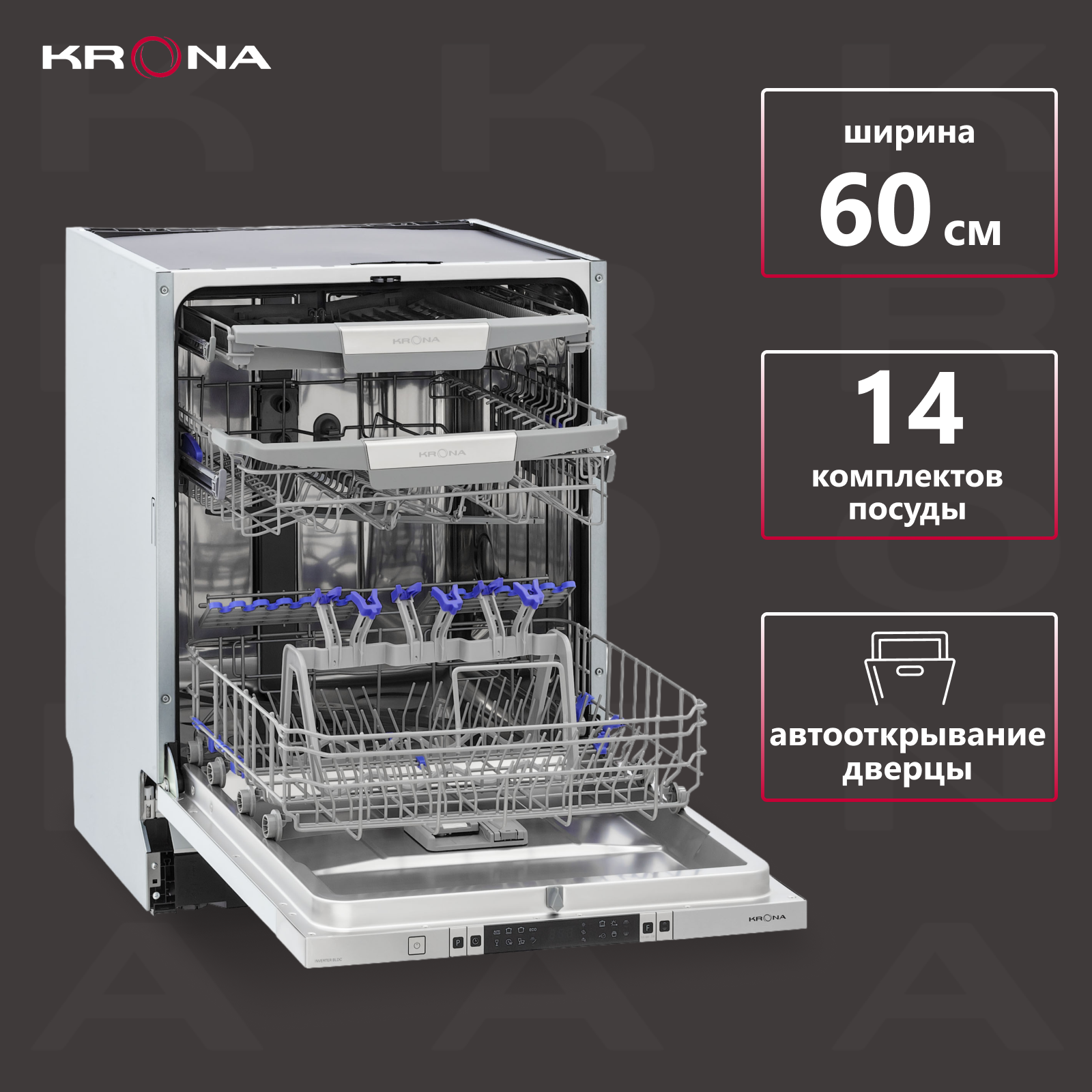 Встраиваемая посудомоечная машина KRONA MARTINA 60 BI, полноразмерная, 14 комплектов, серебристый