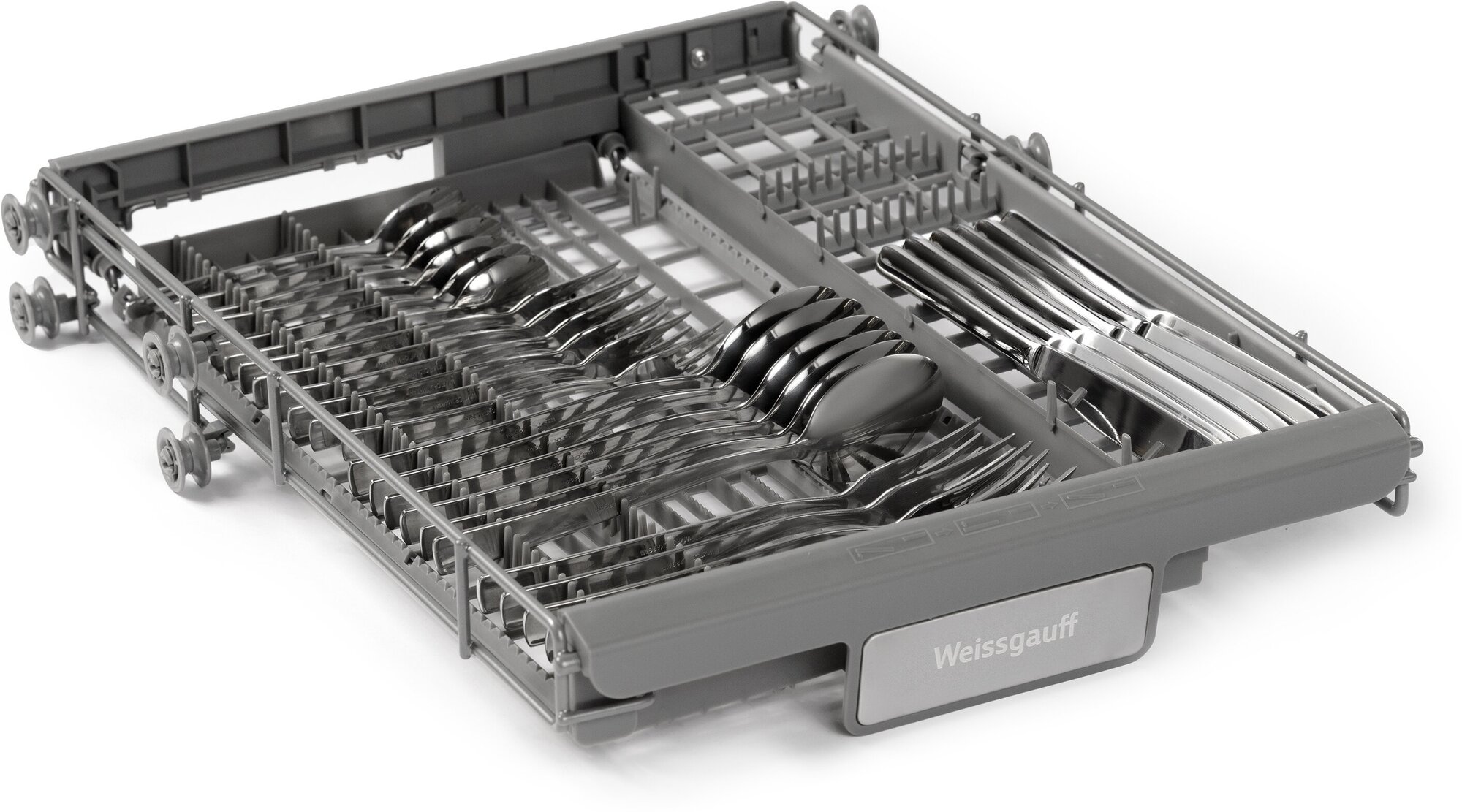 Встраиваемая посудомоечная машина WEISSGAUFF BDW 4150 Touch DC Inverter, узкая, ширина 44.8см, полновстраиваемая, загрузка 10 комплектов, серебристый