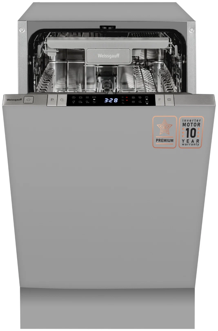 Встраиваемая посудомоечная машина WEISSGAUFF BDW 4150 Touch DC Inverter, узкая, ширина 44.8см, полновстраиваемая, загрузка 10 комплектов, серебристый