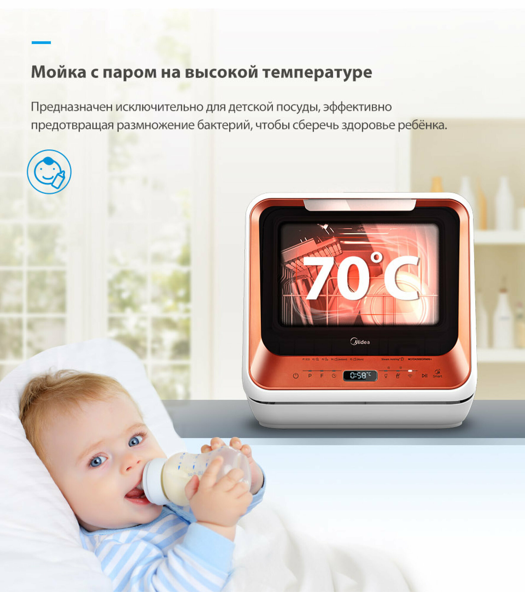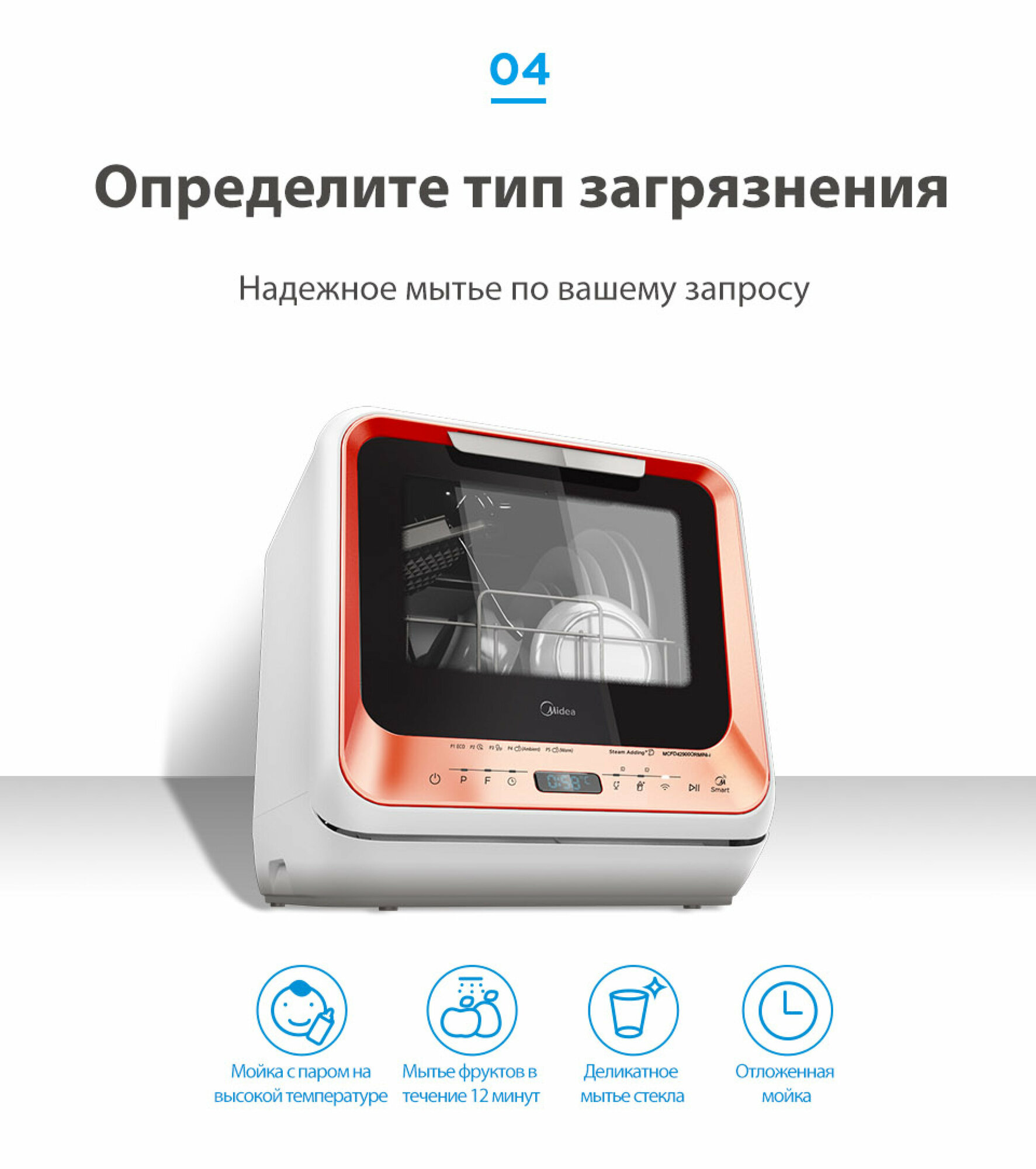 Компактная посудомоечная машина Midea MCFD42900ORMINI-i, оранжевый интересное: