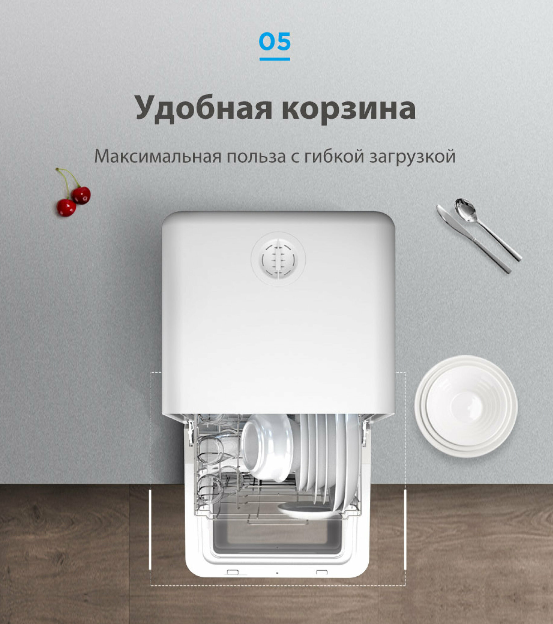 2. Хорошо моет ? 3. Вмещается в мою супермаленькую кухню 4. Не надо подключать к сантехнике, воду я заливаю сама, а шланг смывается сразу в раковину, рядом которой и стоит машинка 5. Использует 5 литров на любом режиме 6. Много режимов, в т.ч. И для мытья фруктов |