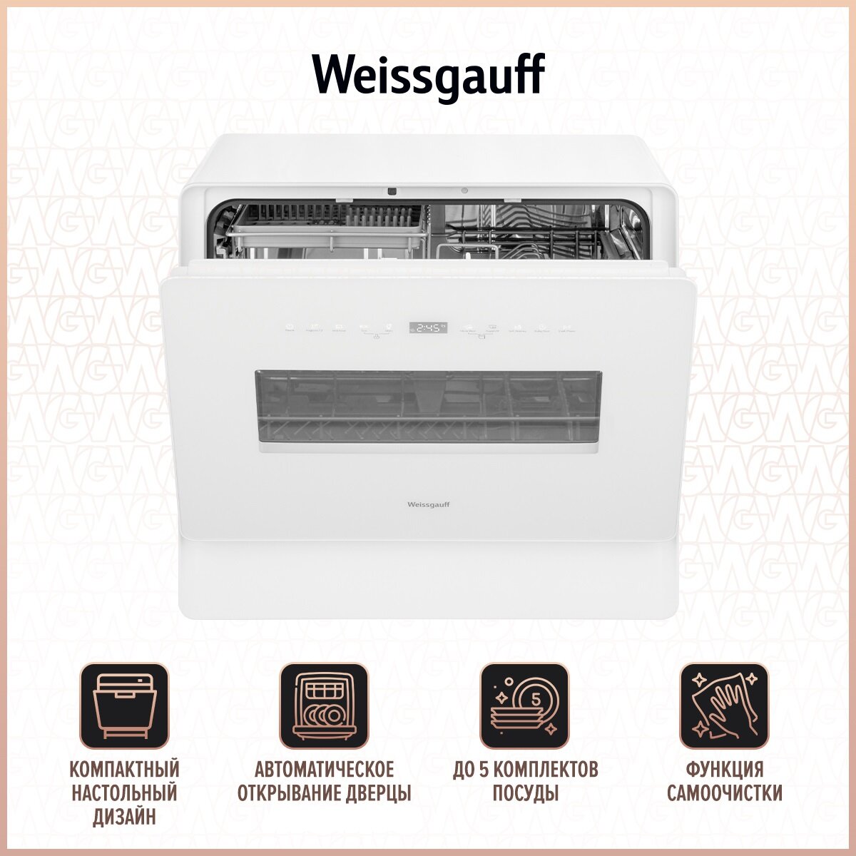Посудомоечная машина WEISSGAUFF TDW 5035 D Slim, компактная, настольная, 55см, загрузка 5 комплектов, белая [430482]