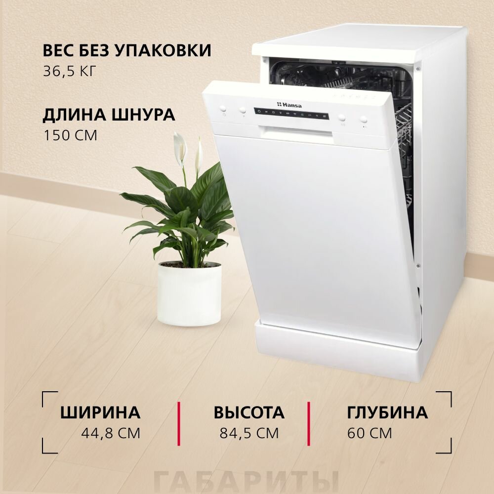 Посудомоечная машина Hansa ZWM416WH, узкая, напольная, 44.8см, загрузка 9 комплектов, белая