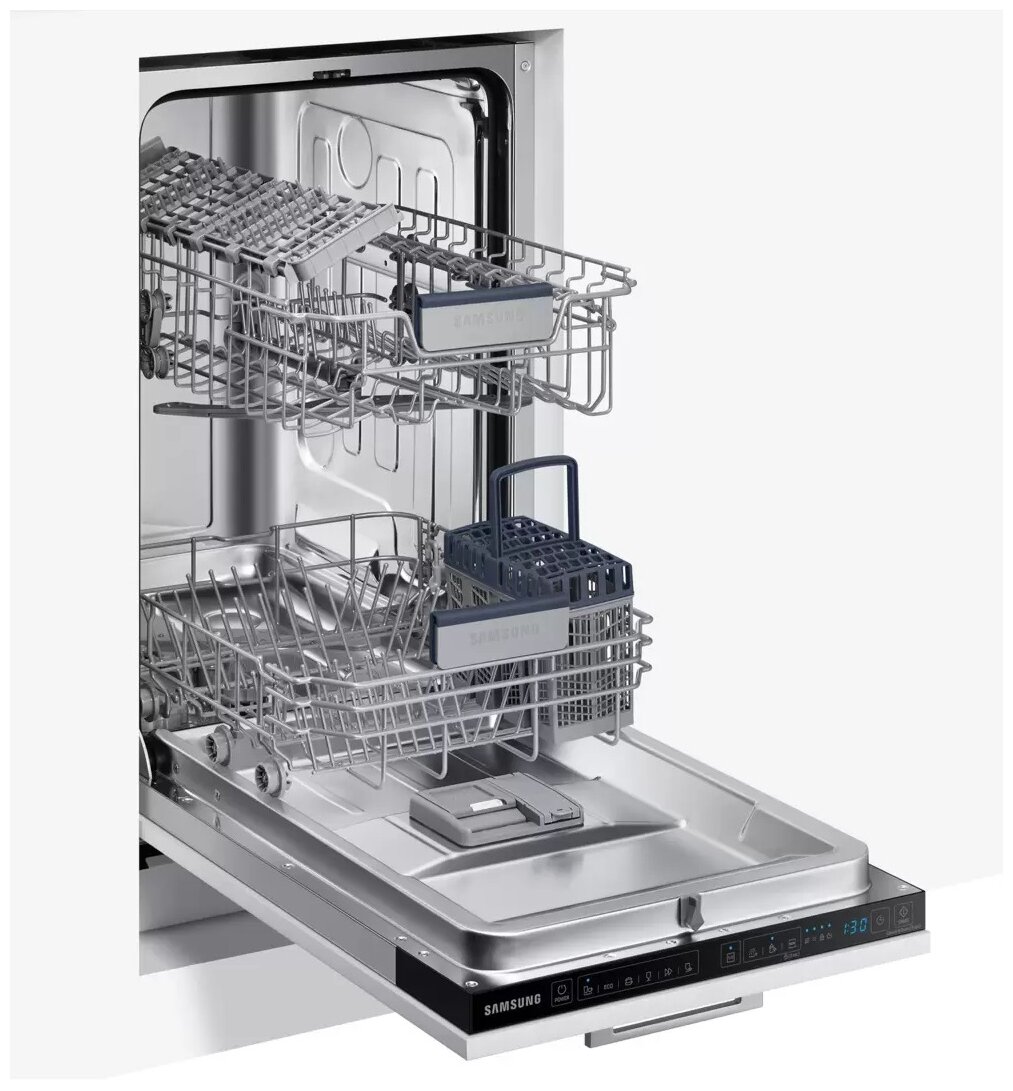 Посудомоечная машина Samsung ширина 45 см, встраиваемая, сенсорное управление, 6 программ, аква-стоп, датчик протечки
