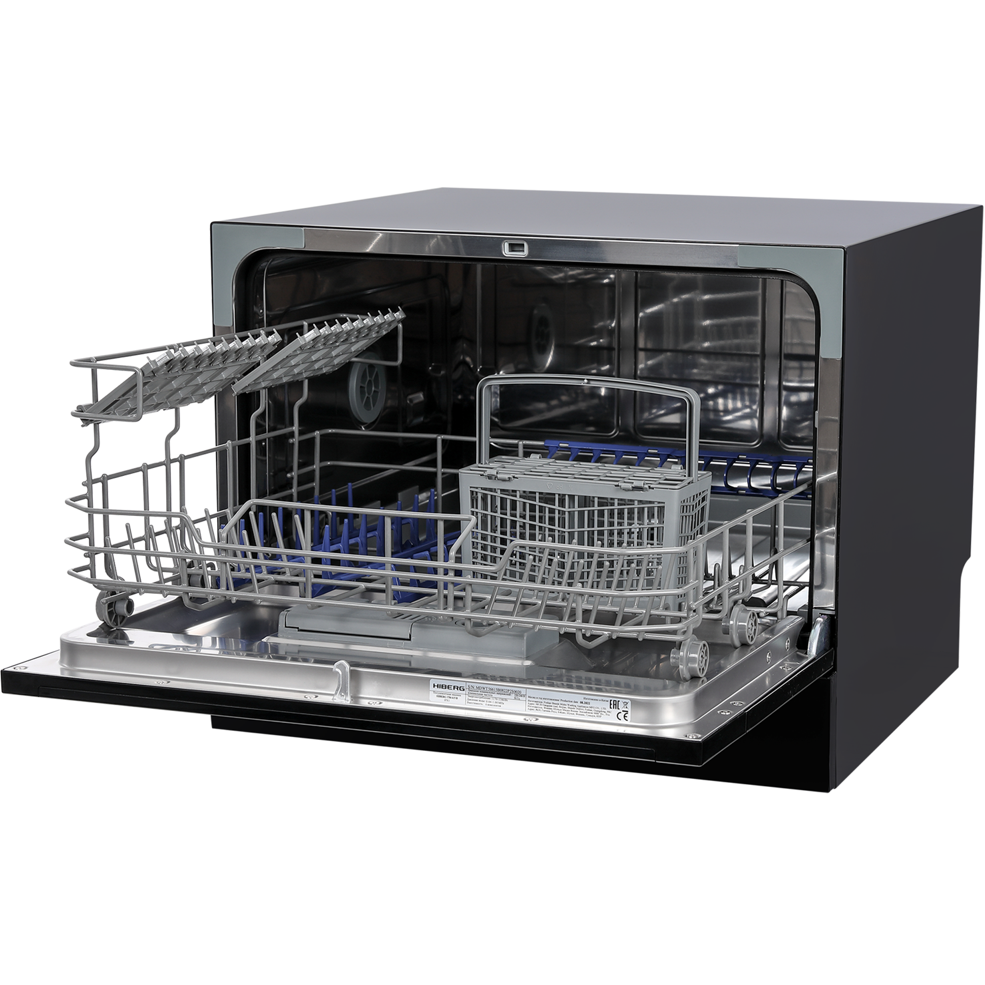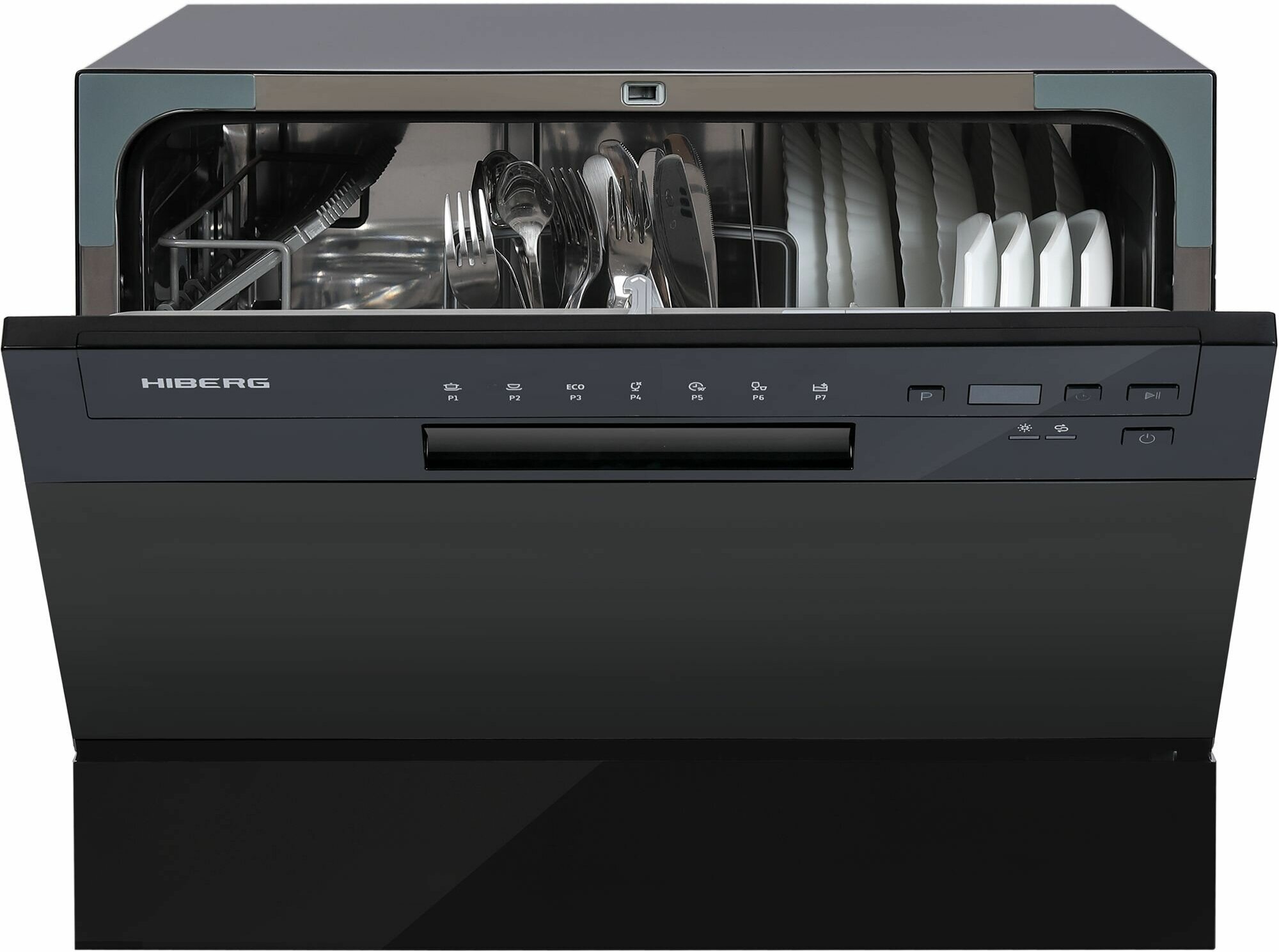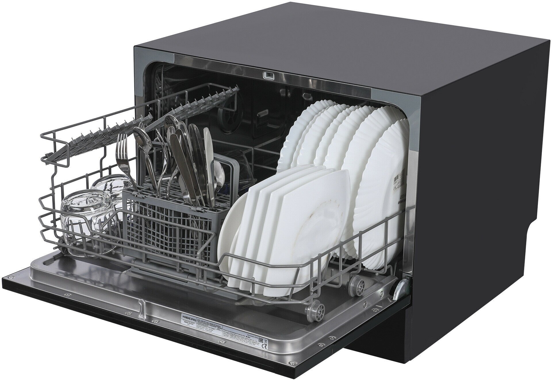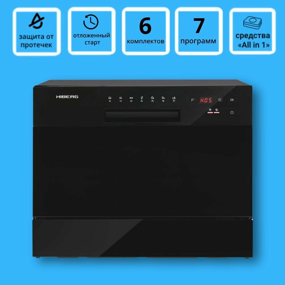Купить Посудомоечная машина HIBERG T56 615 B, отдельностоящая, возможность встраивания, mini, 7 программ, 2 корзины, цвет черный