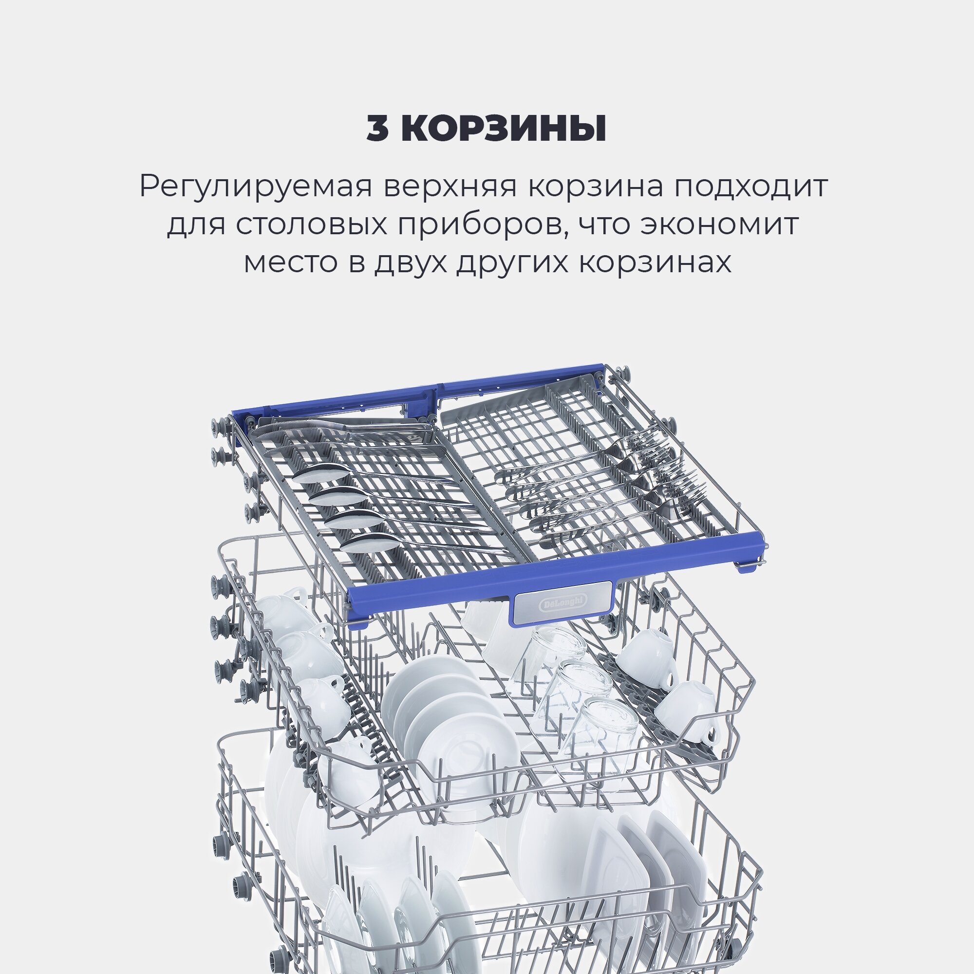 Встраиваемая посудомоечная машина 60 см DeLonghi DDW 06F Granate platinum, 14 комплектов, 3 корзины, внутренняя LED-подсветка, 60см