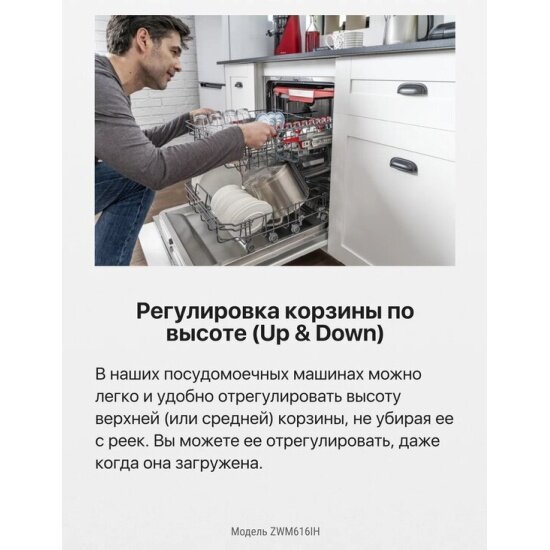| Особенности конструкции | регулируемая по высоте корзина для посуды / внутренняя поверхность из нержавеющей стали |