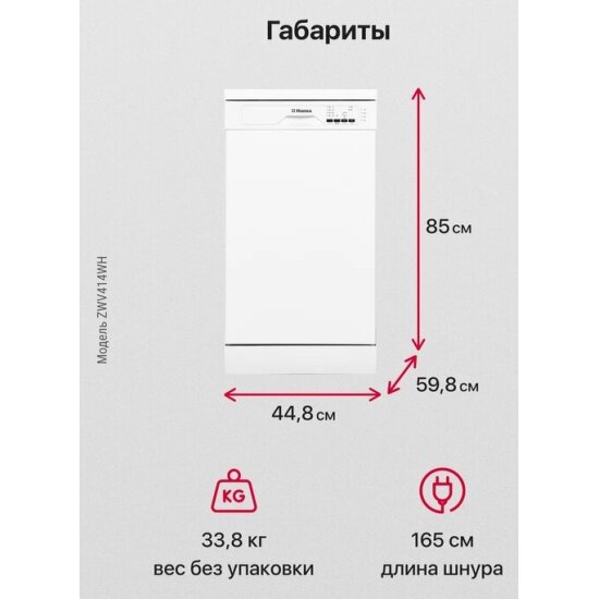 Посудомоечная машина отдельностоящая HANSA ZWV414WH интересное: