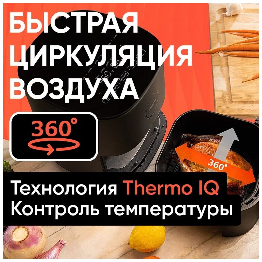 Аэрогриль Cosori CAF-L501 / объем 4,7л / 9 режимов / 100 рецептов / отсрочка старта / сенсорная панель управления / гриль электрический / мультипечь / электропечь с конвекцией / Air Fryer Pro LE