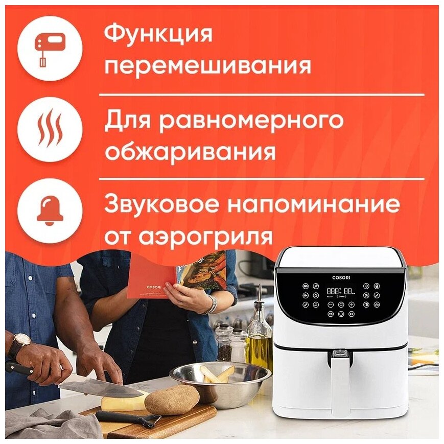Аэрогриль Cosori CP158-AF / объем 5,5л / 11 режимов / 100 рецептов / отсрочка старта / сенсорная панель управления / гриль электрический / мультипечь / электропечь с конвекцией / Air Fryer