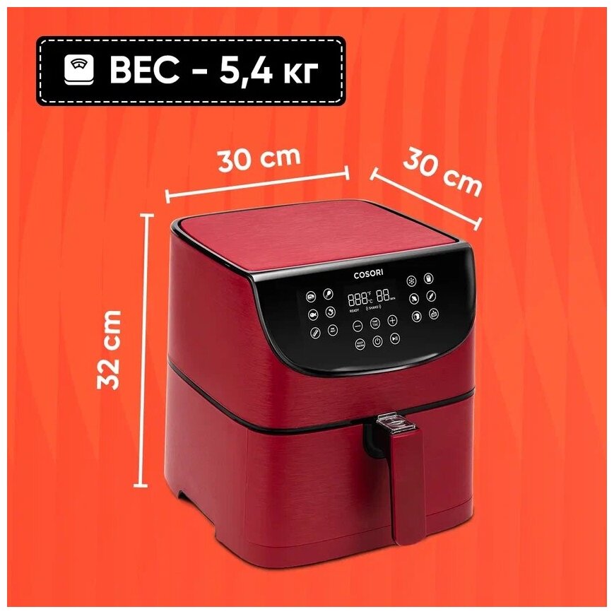 Аэрогриль Cosori Air Fryer CP158-AF, красный, объем 5,5 л