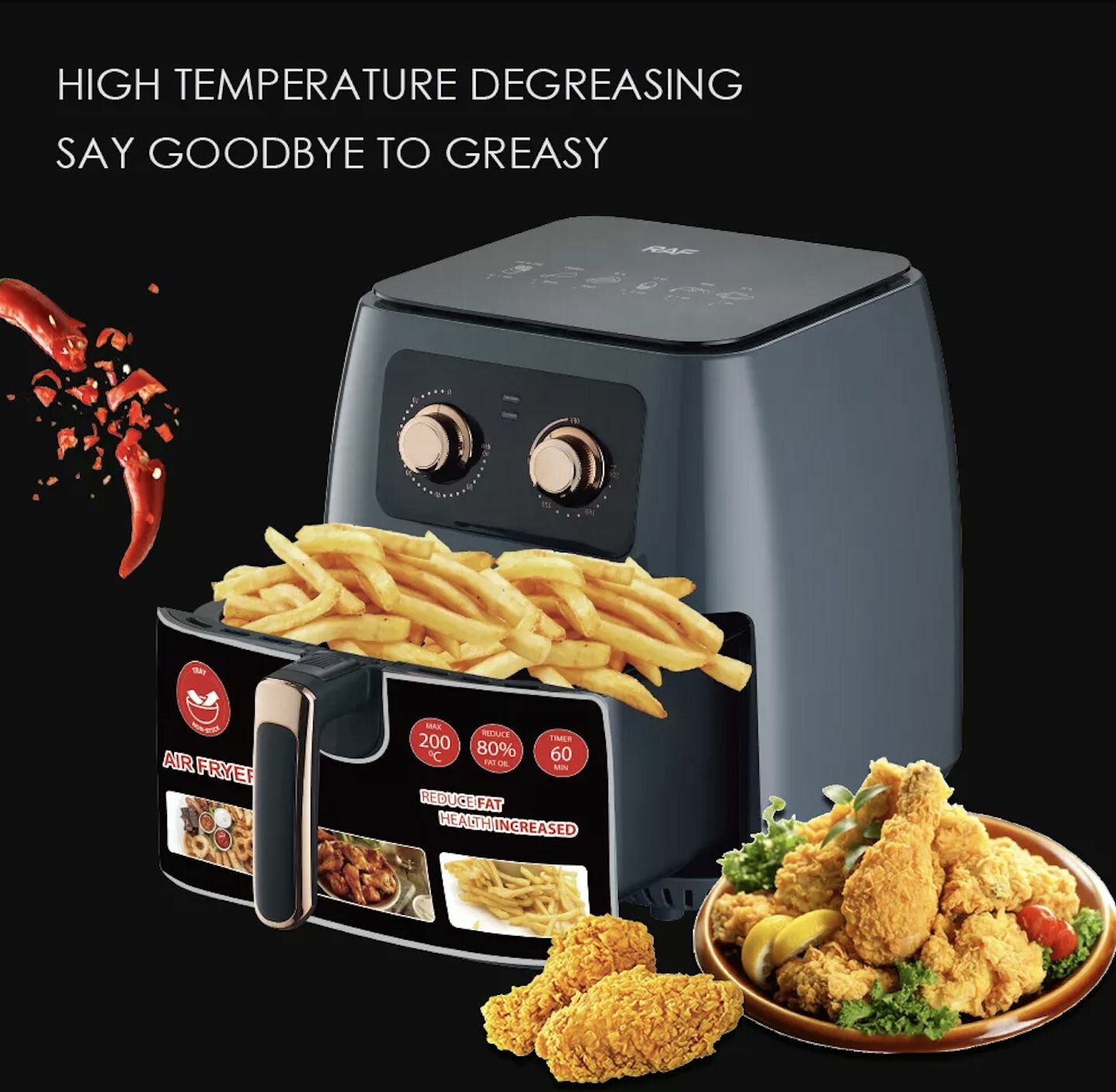 Воздушная фритюрница/аэрогриль RAF R.5294, 8 литров, черный интересное: