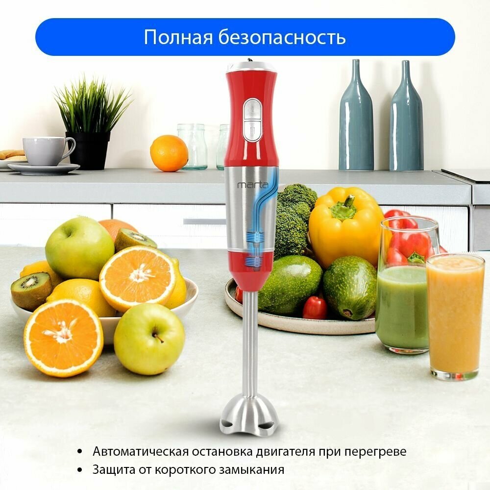 Блендер погружной MARTA MT-1574 1200 Вт, красный коралл
