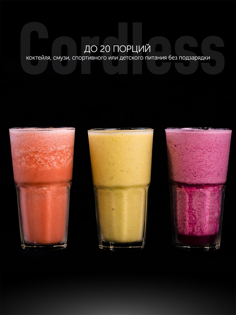 | Плюсы: | Особенно понравилось, что блендер маленький и беспроводной. Заряда мне на рабочую неделю спокойно хватает. Начала брать с собой в офис, по дороге покупаю продукты и делаю там из них несколько раз в день смузи. Такое вот ПП)) |