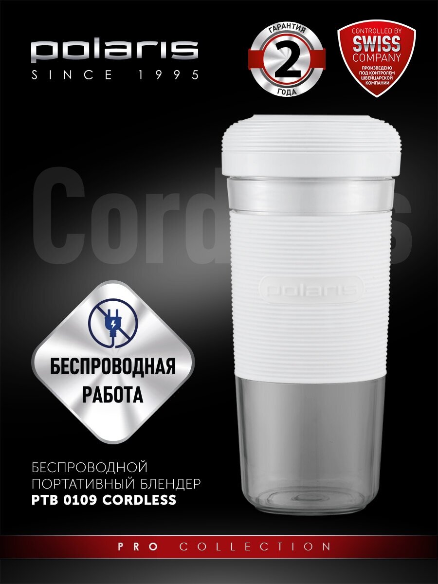 Блендер Polaris PTB 0109 CordLess, стационарный, белый PTB 0109 Cordless белый .