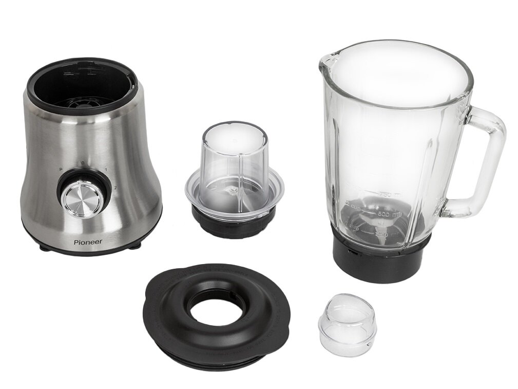 Стационарный блендер из нержавеющей стали Pioneer 2 в 1 c кофемолкой 150 мл, импульсный режим, 2 скорости, стеклянный кувшин 1.5 литра, 750 Вт