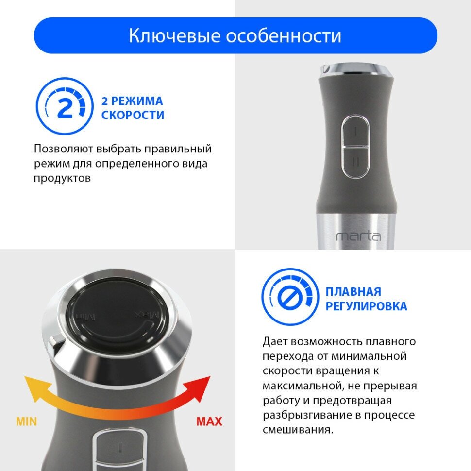 Купить MARTA MT-1566 серый гранит кухонный процессор