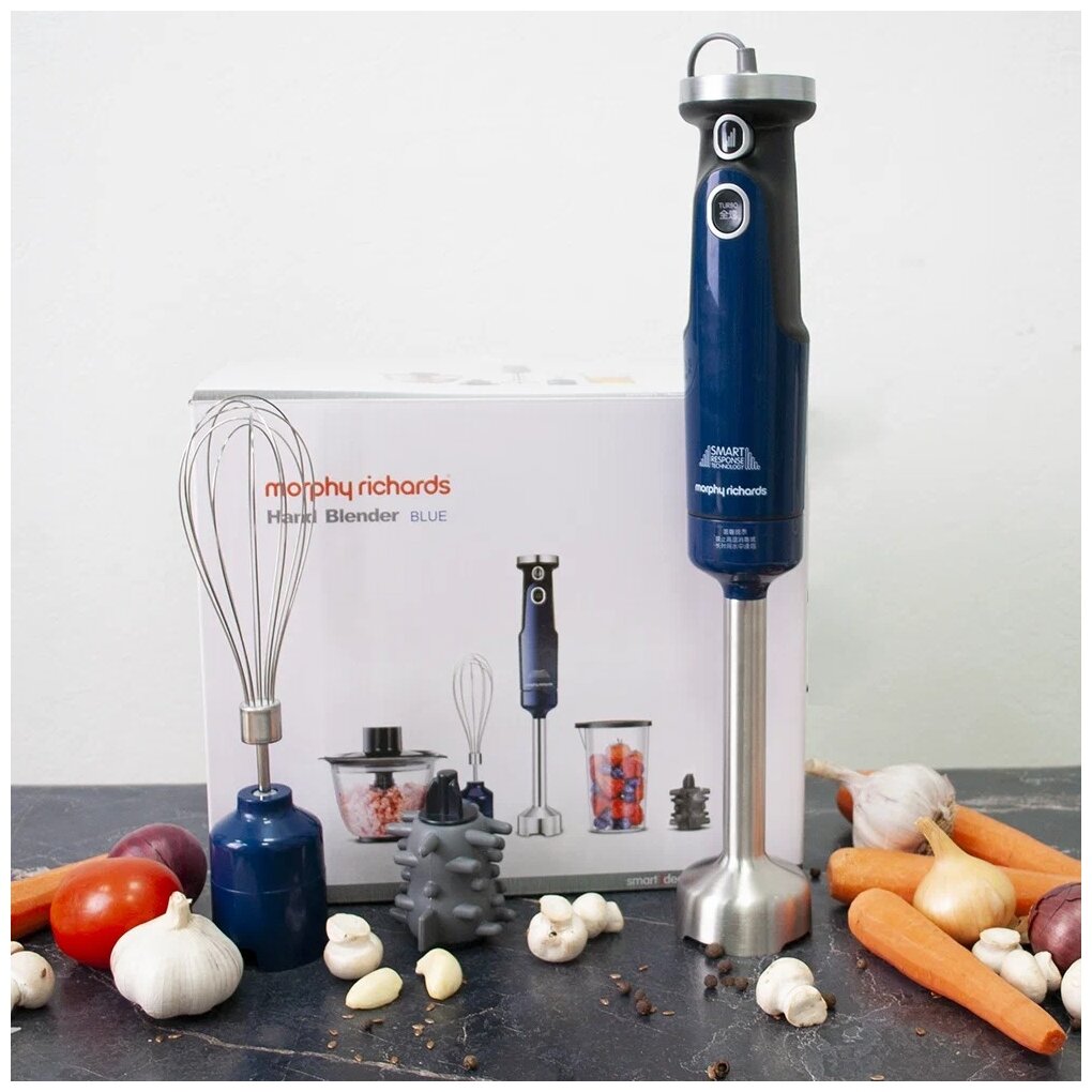 Блендер погружной измельчитель миксер с повышенным сроком службы 4 в 1 с 8-ступенчатой регулировкой скорости Morphy Richards, синий