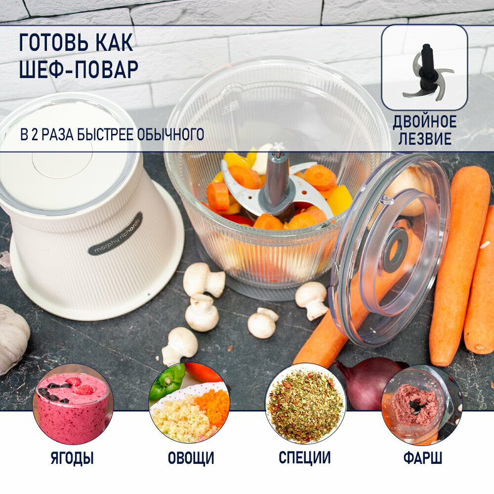Блендер измельчитель кухонный электрический, мультирезка, овощерезка с чеснокочисткой Morphy Richards, белый