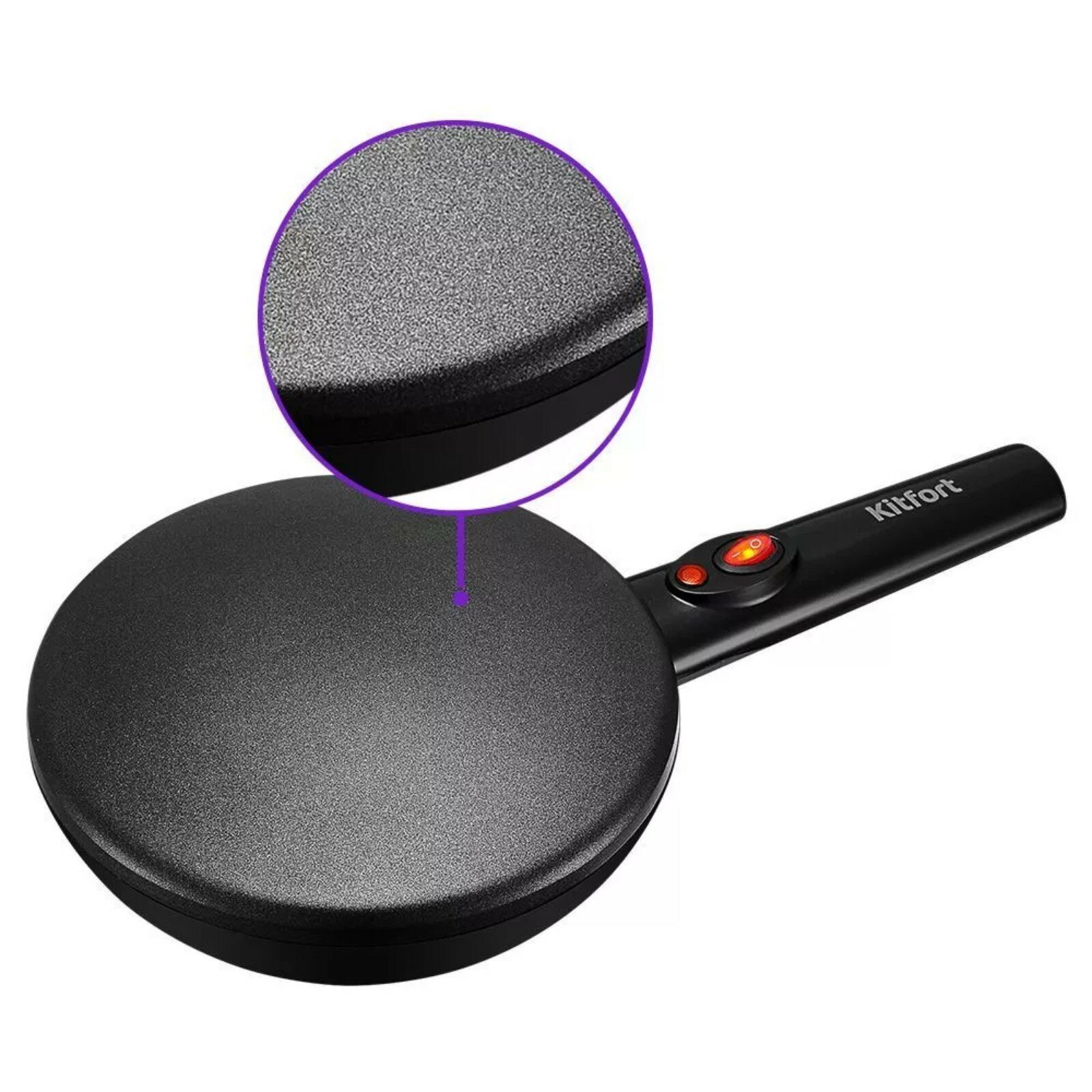 Блинница погружная Kitfort КТ-1677, черный, антипригарное покрытие, блюдце для теста в комплекте