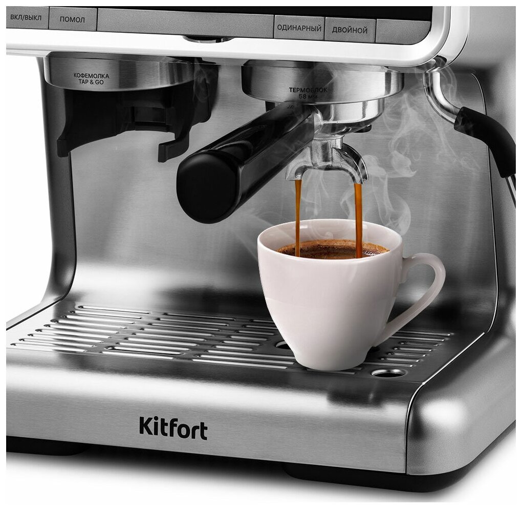 Кофеварка KitFort КТ-789, рожковая, серебристый