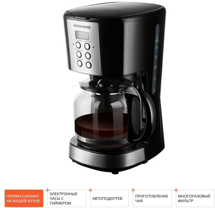 Кофеварка REDMOND CM705, кувшин 1,5 л, капля-стоп, отложенный старт, автоподогрев, многоразовый фильтр