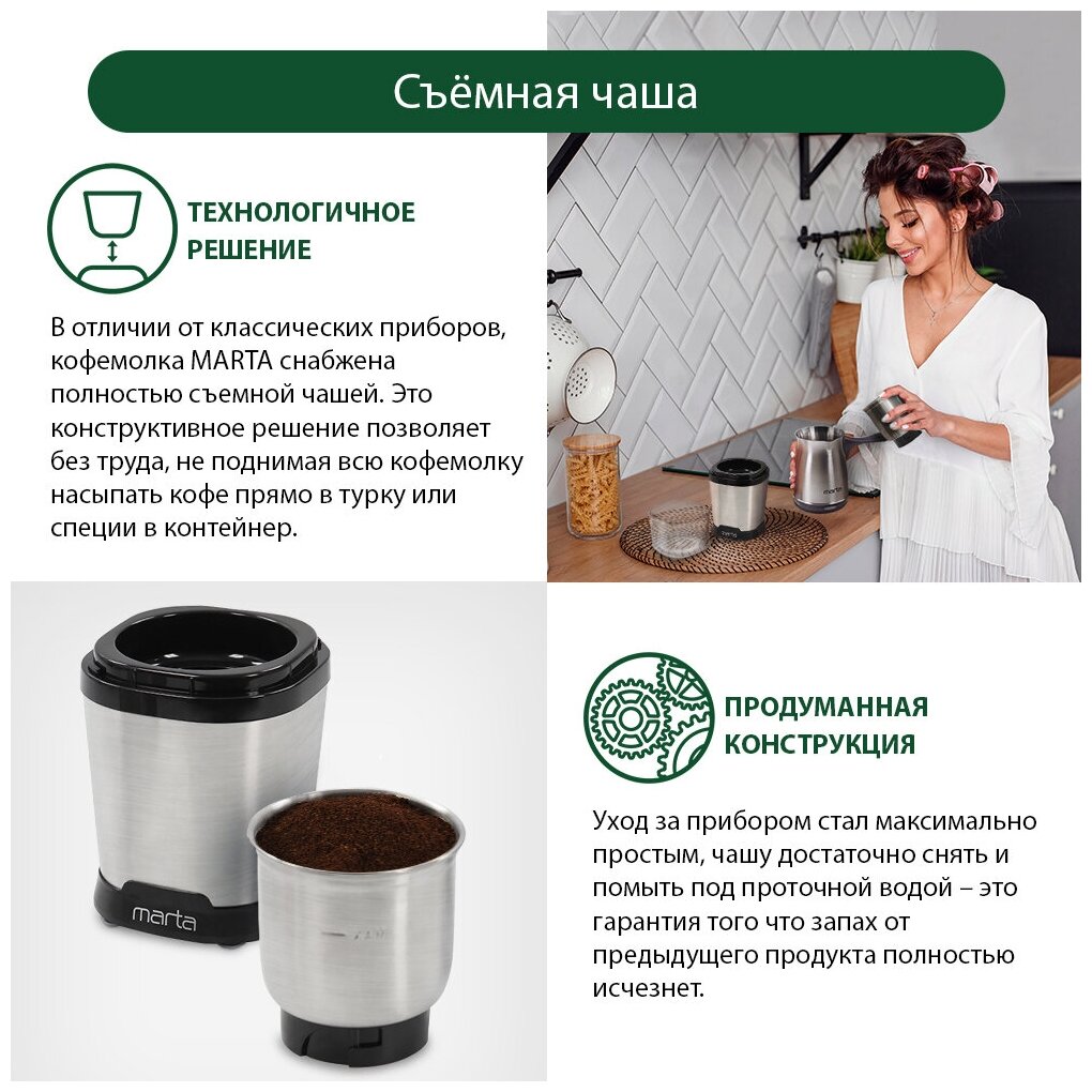 MARTA MT-CG2182A черный жемчуг кофемолка интересное: