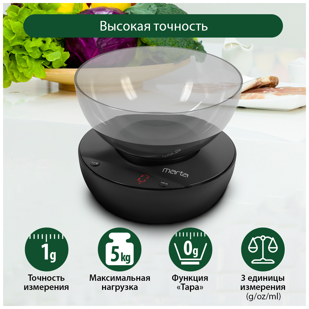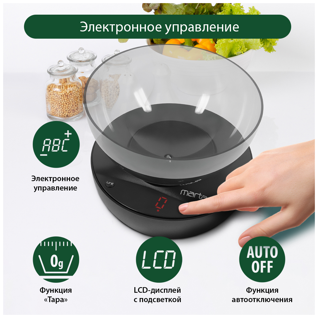 Купить Кухонные весы MARTA MT-1648, черный жемчуг