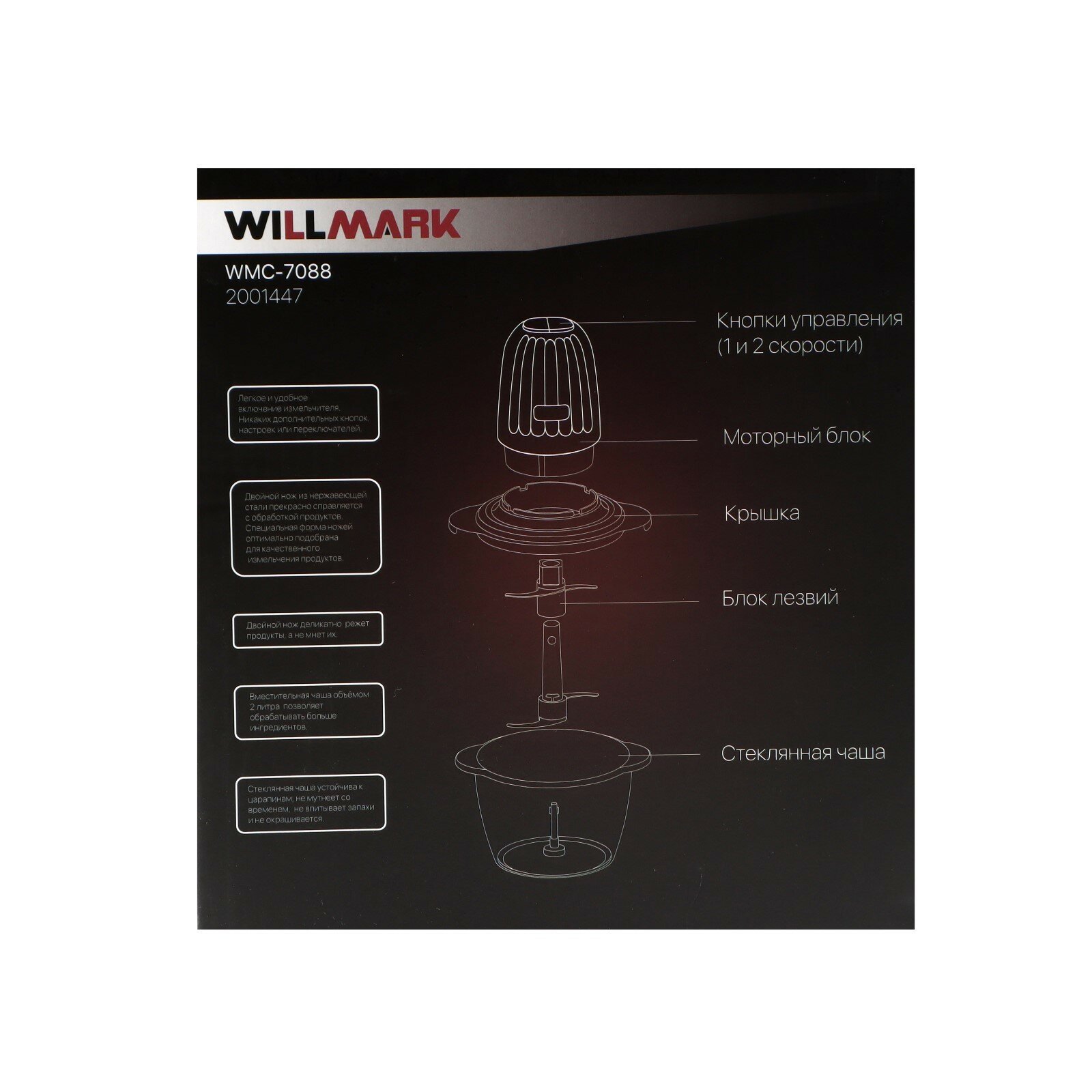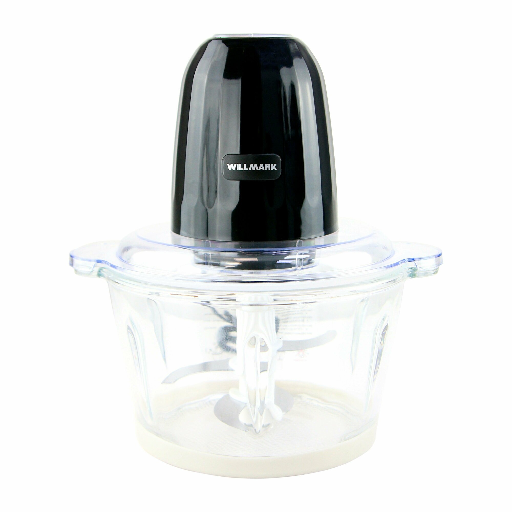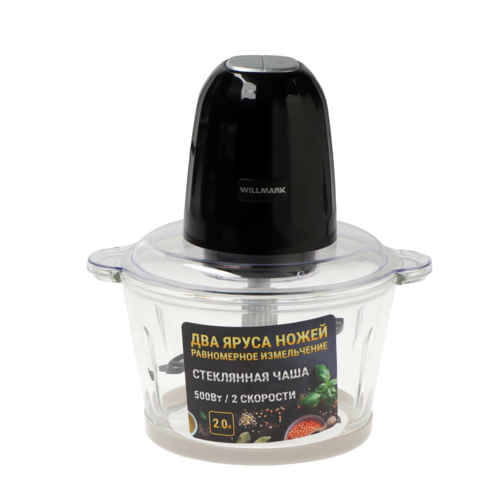 Измельчитель кухонный электрический WILLMARK WMC-7088, 500 Вт, 2000 мл, стекло, универсальный нож, черный/прозрачный