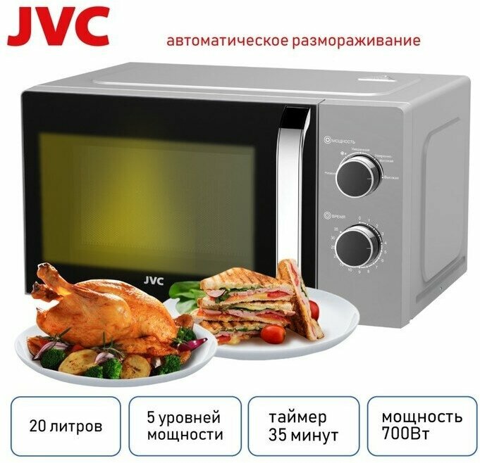 СВЧ JVC JK-MW147M (серебристая, 20 л, таймер, разморозка)