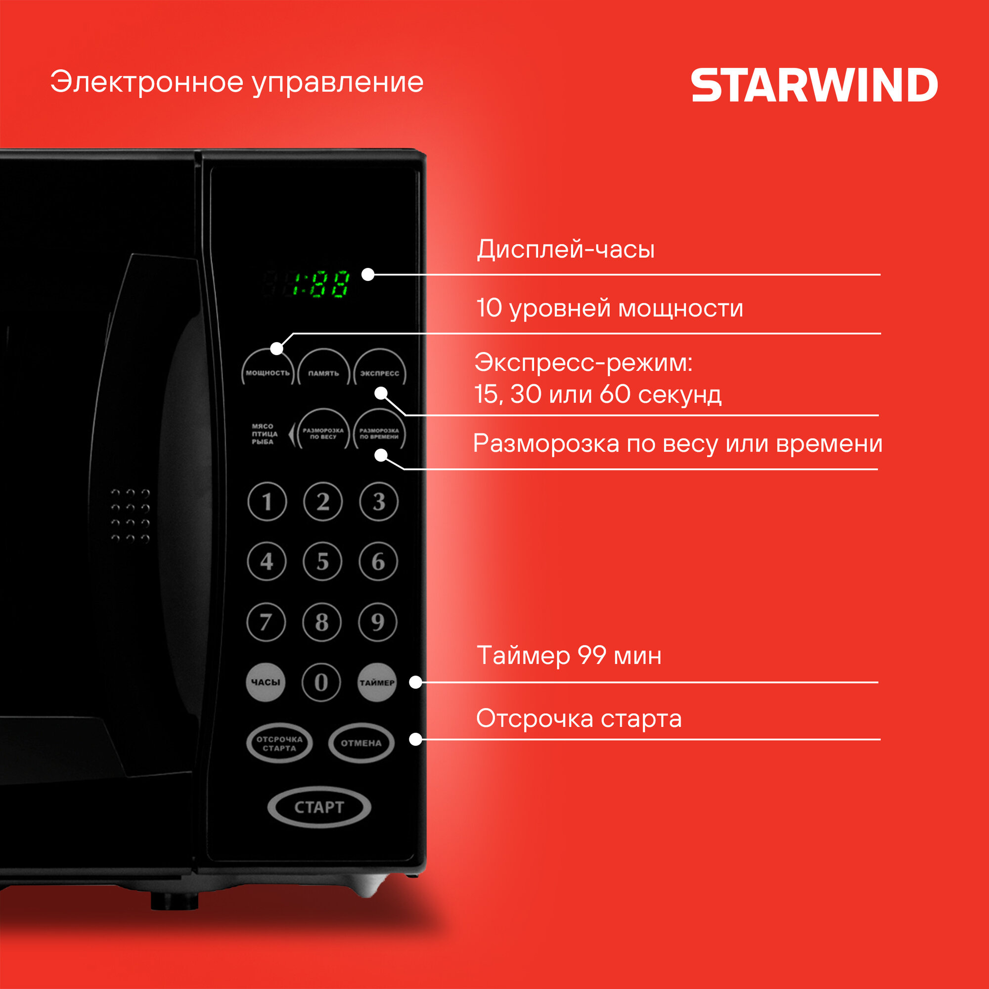 Микроволновая печь Starwind SMW4420 черный интересное: