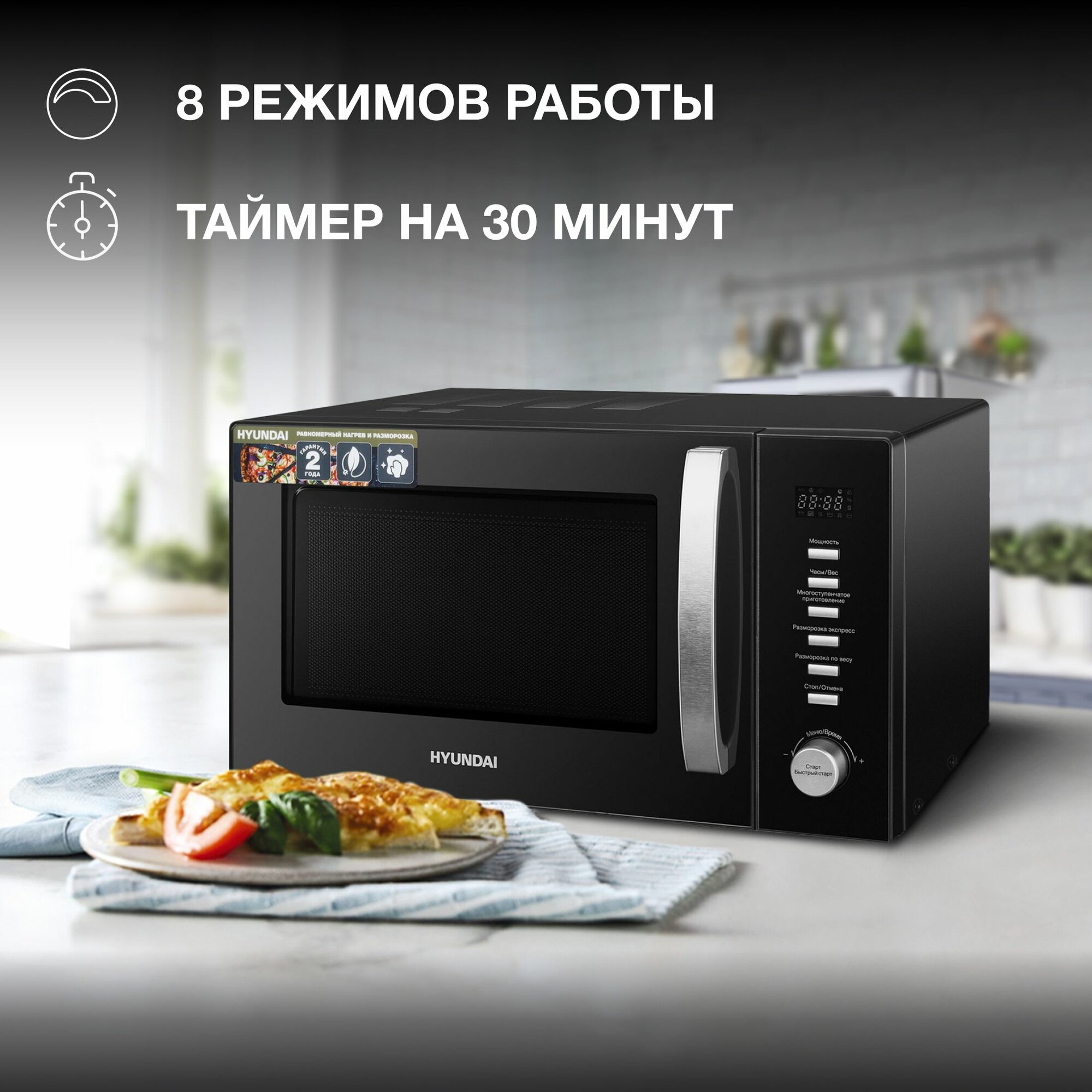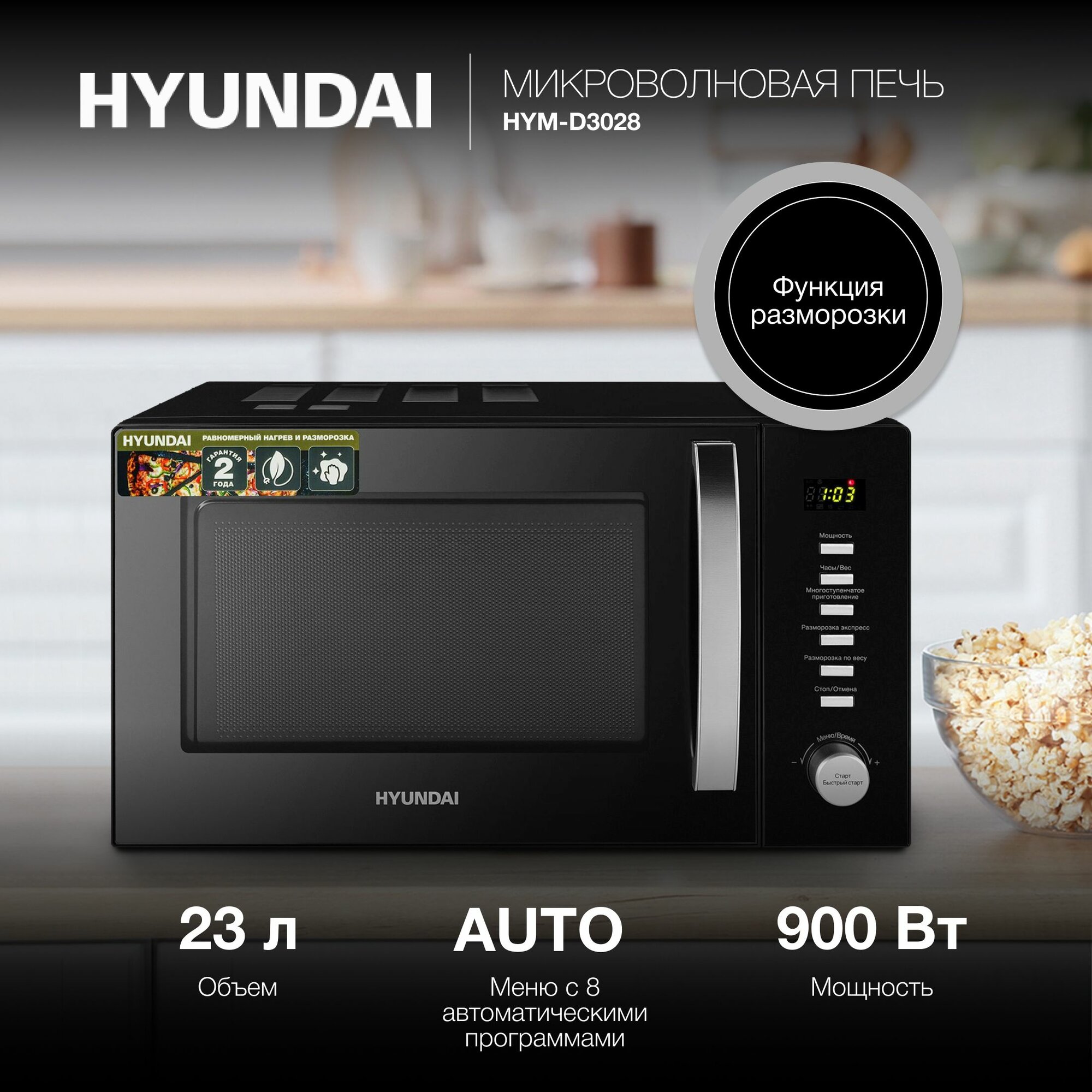 Микроволновая печь (СВЧ) Hyundai HYM-D3028 черный/серебристый, мощность 900Вт, объем 23л, электронное управление
