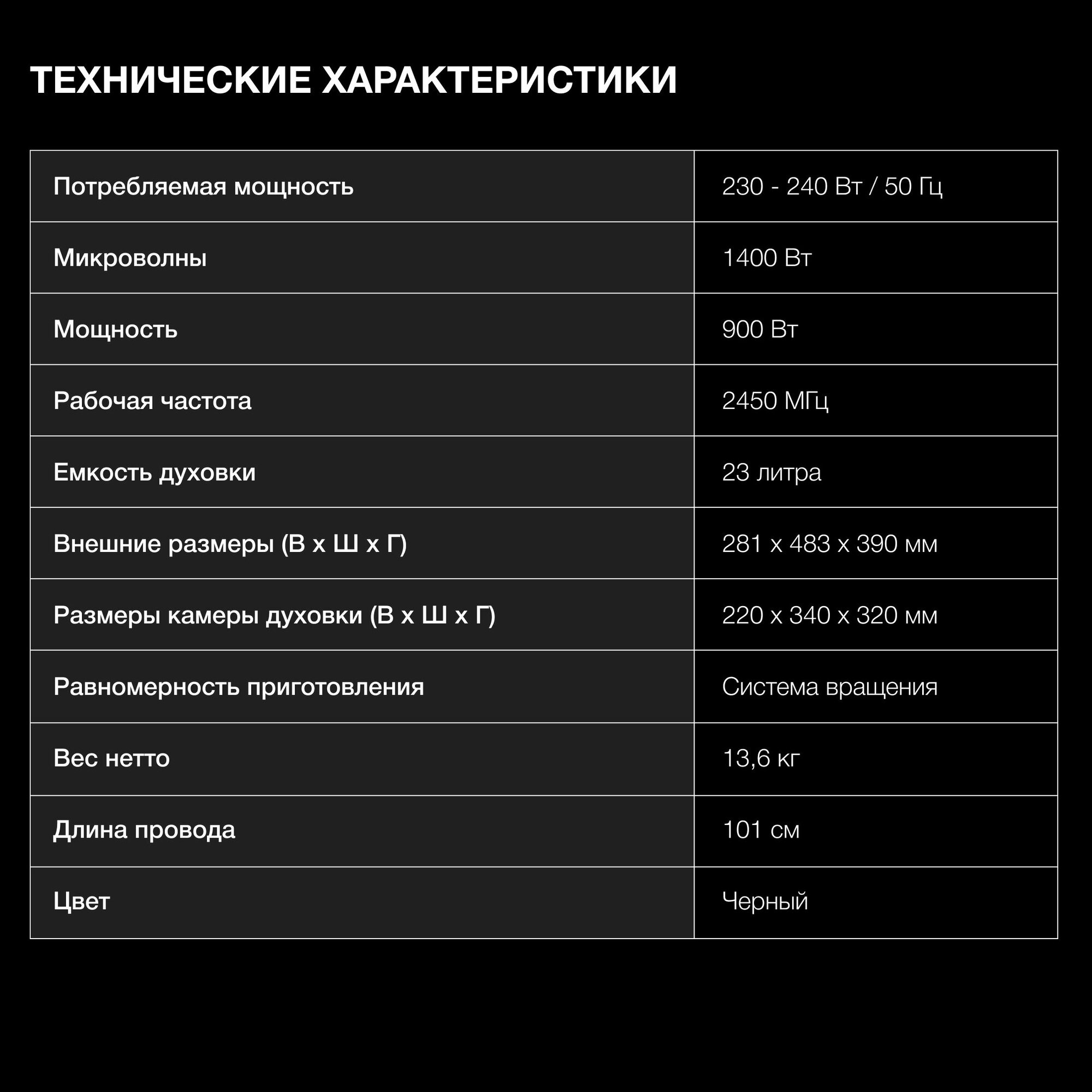 | Дополнительные режимы | автоматическая разморозка / автоматическое приготовление / ускоренная разморозка |