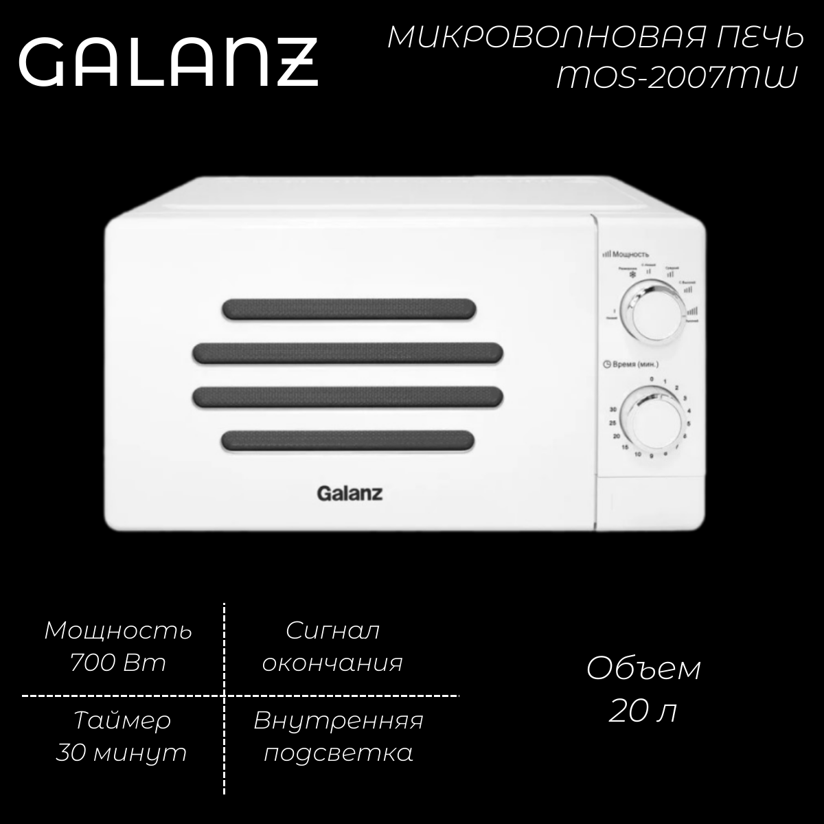 Микроволновая печь Galanz MOS-2007MW, 700Вт, 20л, белый