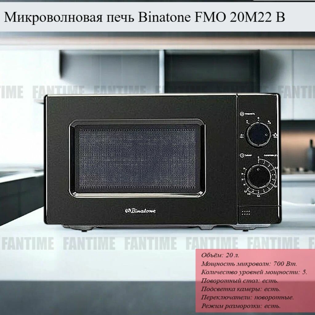 BINATONE Микроволновая печь FMO 20M22 B, мощность СВЧ 700 Вт, черный
