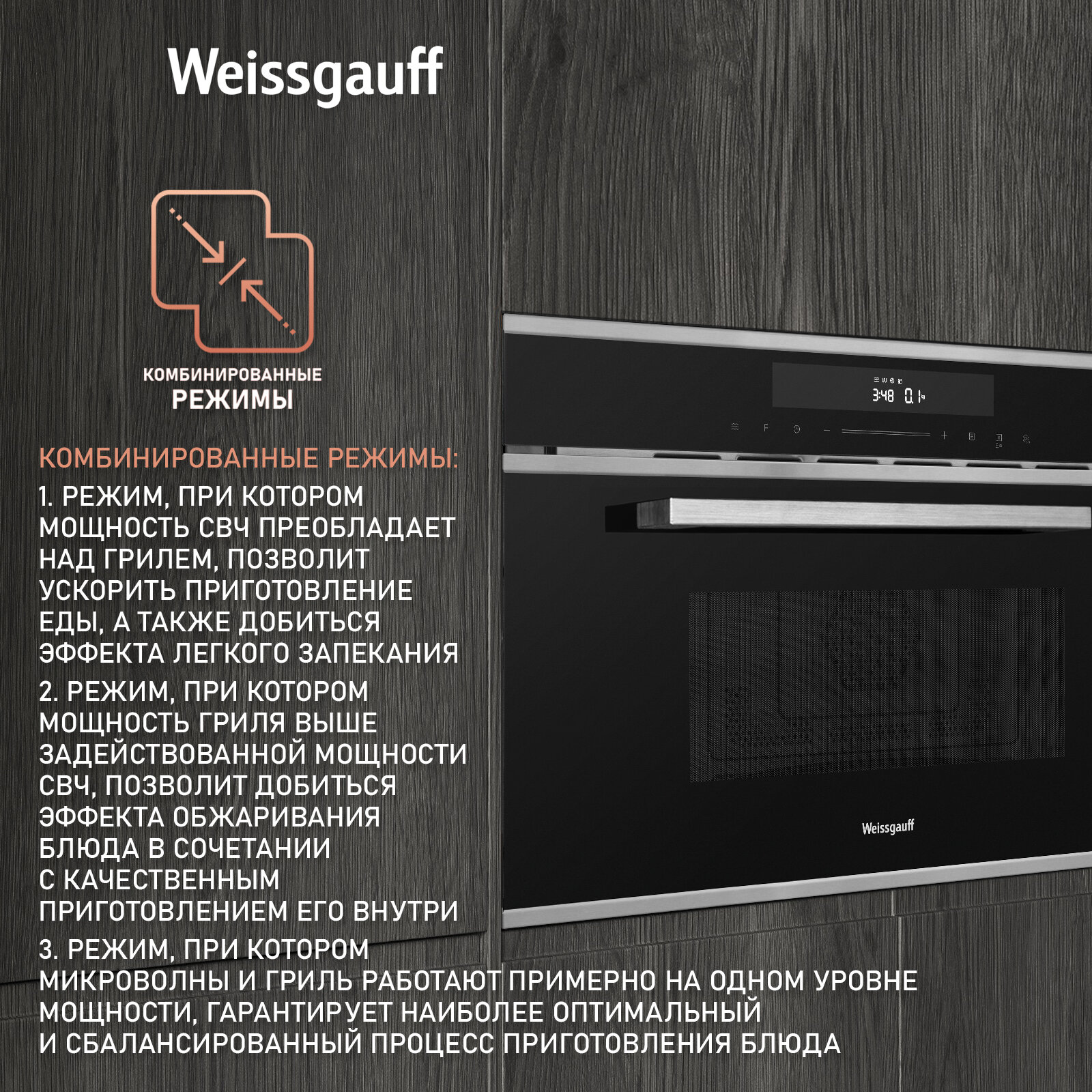 Встраиваемая микроволновая печь Weissgauff BMWO-349 Dbsx Touch интересное: