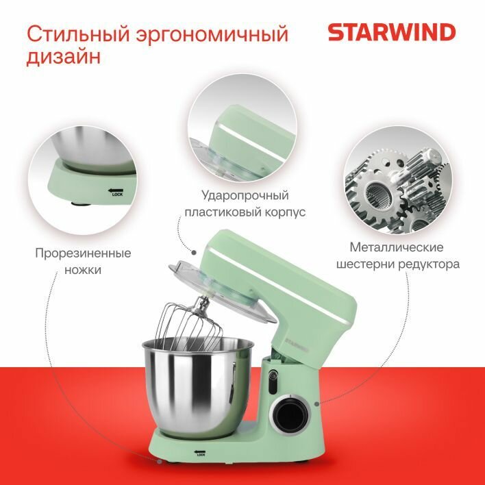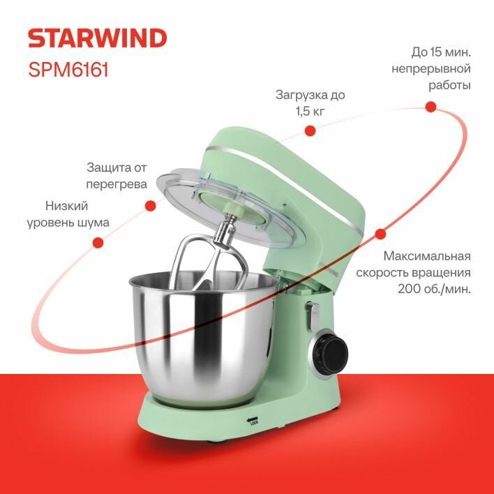 СохранитьМиксер планетарный Starwind SPM6161 1300Вт мятный интересное: