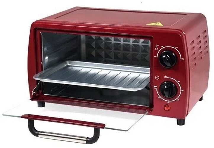 Как написано в инструкции,сначала прогрели на температурном максимуме, был запах, но при последующих включениях запах уменьшился и совсем исчез. В комплекте противень и решетка.Решетка из блестящего металла, как и в обычной духовке, а противень-оцинкованная сталь, похоже. Понравилось, что противень можно ставить отдельно, а не на решётку, как в некоторых других подобных бюджетных моделях. Но пользуемся в основном решёткой. Помещается 3 больших бутерброда. С управлением справляются и подростки. Есть два тумблера-температура(от 100 до 250 гр.) и таймер(при работе издаёт звук-тикает,при отключении-звоночек). Таймер немного смущает, иногда как-будто стоит на месте и не двигается,пару раз не сработал звоночек при отключении. Пока непонятно.Проблемы большой нет, не напрягает, когда надо - отключаем сами. Также таймер может работать и при отключённом питании, поэтому предварительно проверяйте. Обычно запекаем бутерброды при 150 гр., этого достаточно. При максимальной температуре, дверца как-будто слегка прилипает к печке в месте, где нанесена краска. Но краска не отходит, не плавится. Печка быстро нагревается и остывает. Снаружи тоже нагревается, особенно сверху, это надо учитывать при установке. Мы подстелили силиконовый коврик для запекания на всякий случай, чтобы не портить столешницу, и чтобы печка не скользила-очень лёгкая, легко перемещается. Но в этом и плюс есть-можно при необходимости убирать. Печка очень нравится, пользуемся каждый день. Рекомендую! |