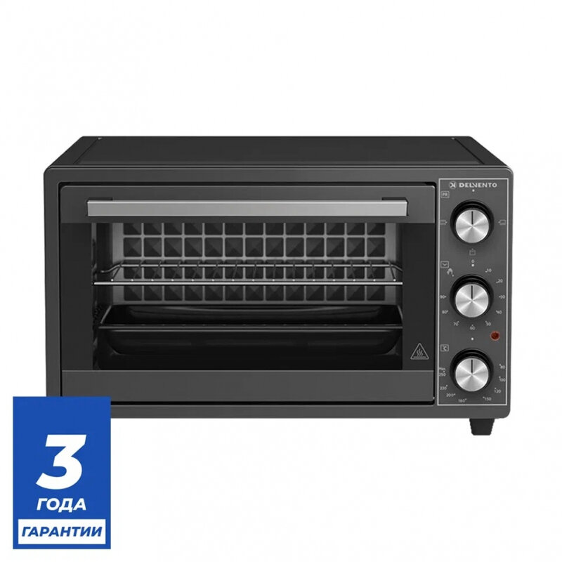 Мини печь электрическая DELVENTO D2506 Ergonomic+ / объем 25 литров / 3 режима нагрева / 3 года гарантии / функция тостер / таймер с автовыключением / 2 противня / хромированная решетка / полная комплектация