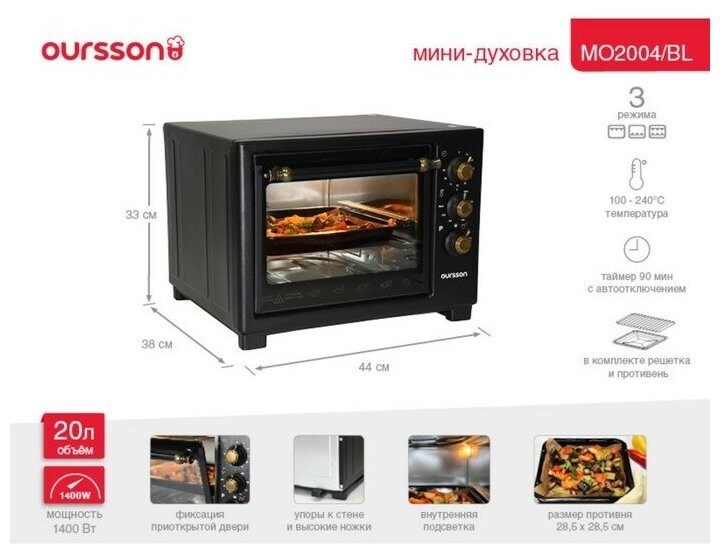 Ниже Вы можете прочитать отзывы на Электропечь Oursson MO2004/BL Черный, ознакомится с подробными характеристиками, посмотреть интересные обзоры и фотографии на Электропечь Oursson MO2004/BL Черный.