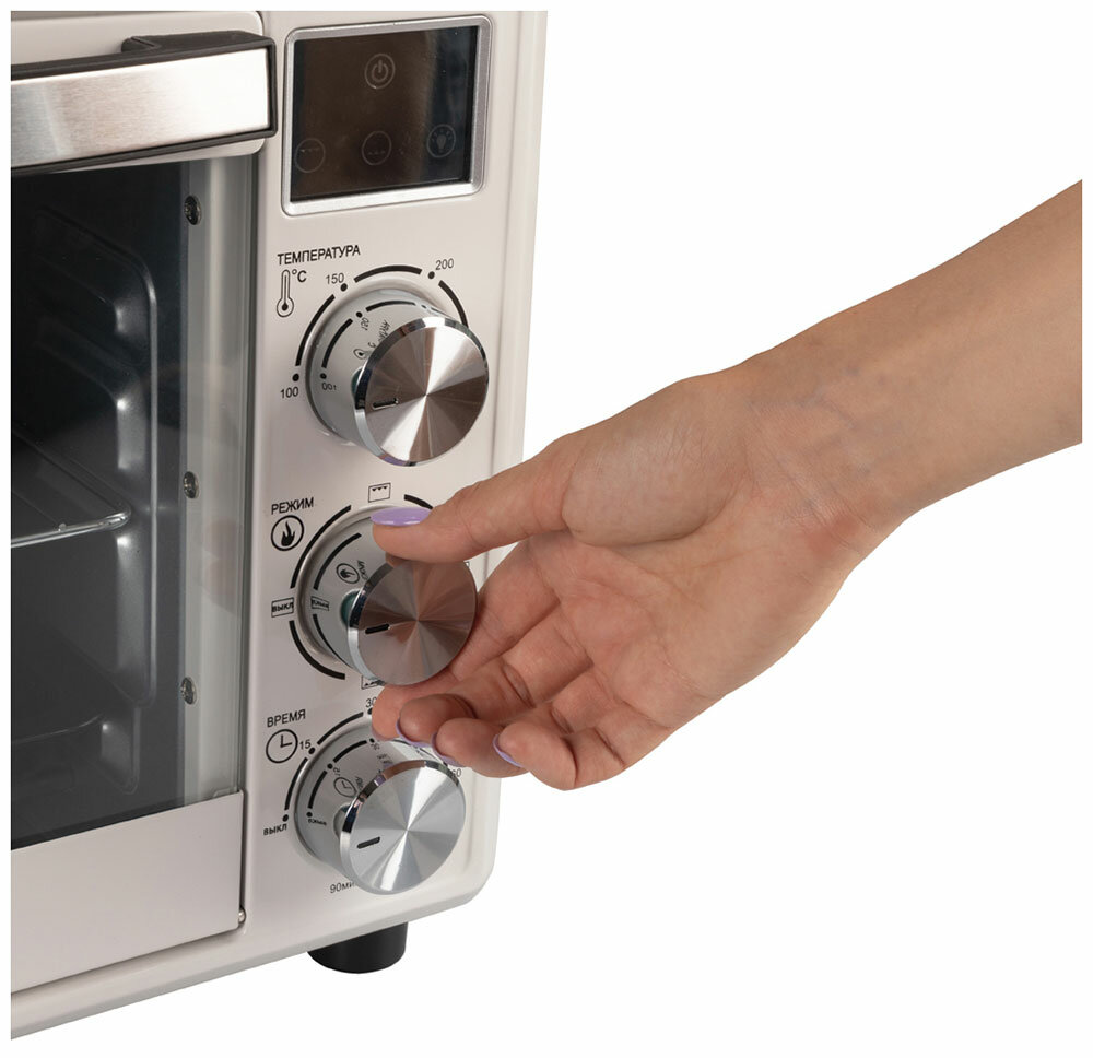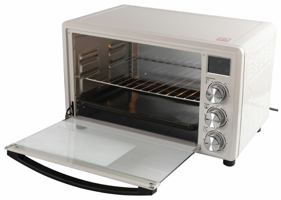 | Дополнительная информация | размер противня 37.5*27.3*2.6 см; размер решетки 37.5*27*0.5 см; нагревательные элементы из нержавеющей стали, большая дверца и удобная ненагревающаяся ручка, таймер с функцией автоотключения и звуковым сигналом, количество противней в комплекте: 1, длина шнура 0,9 метра. |