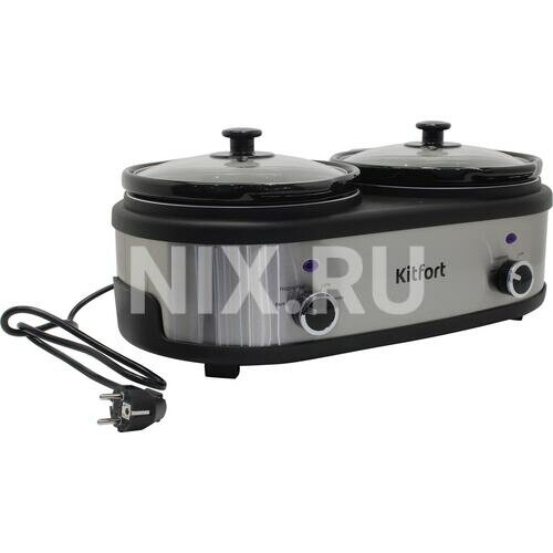 Медленноварка КТ-219, 280 Вт, 2 л + 2 л, 3 режима, серебристая