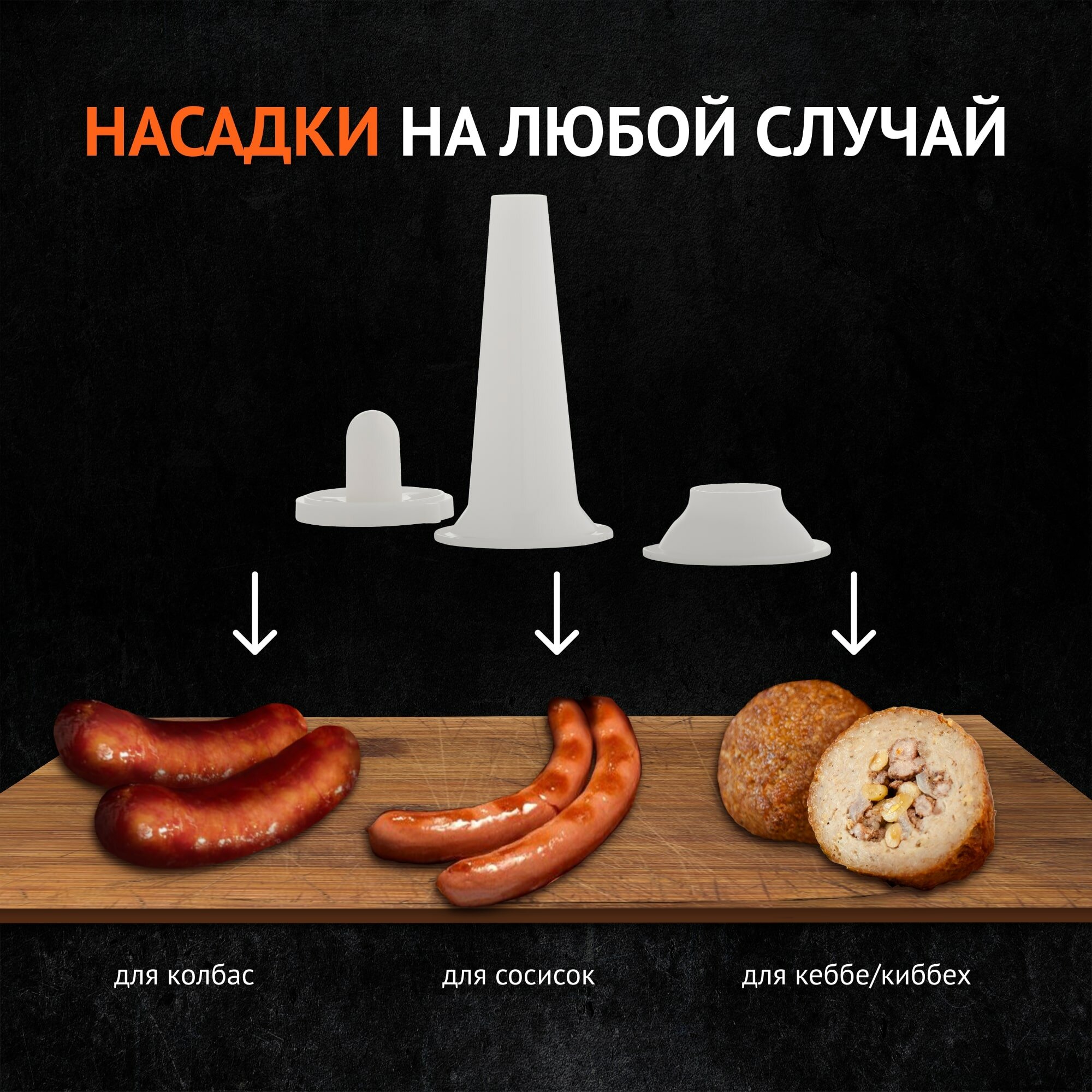 | Насадки | диск для фарша / насадка для кеббе / насадка для приготовления колбас / насадка для шинковки / насадка-терка |