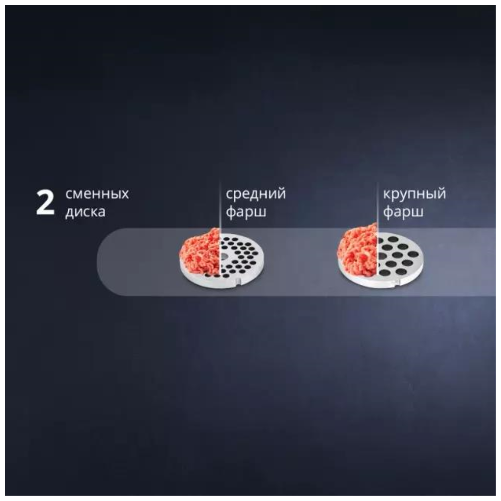 | Дополнительная информация | съемный нож, ручка для перемещения, полностью разборная камера подачи мяса, решетка для рубленого фарша, функция автореверса; материал лотка: пластик; количество насадок-терок: 1 |